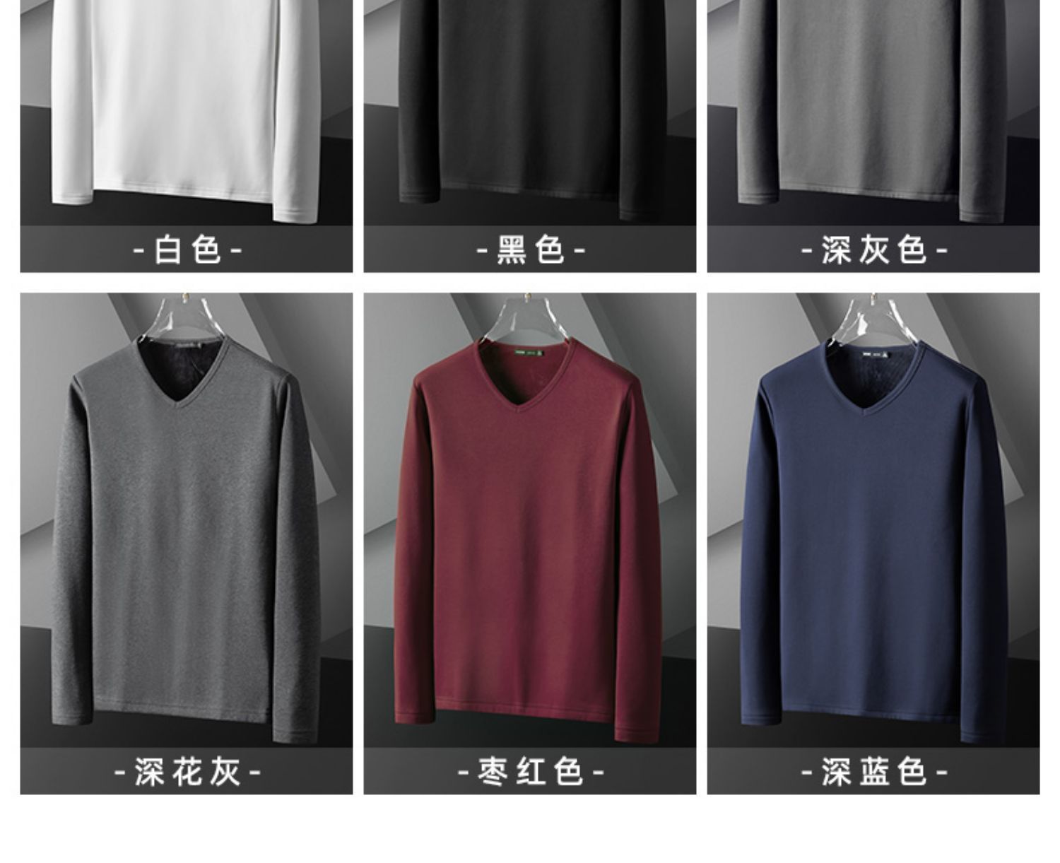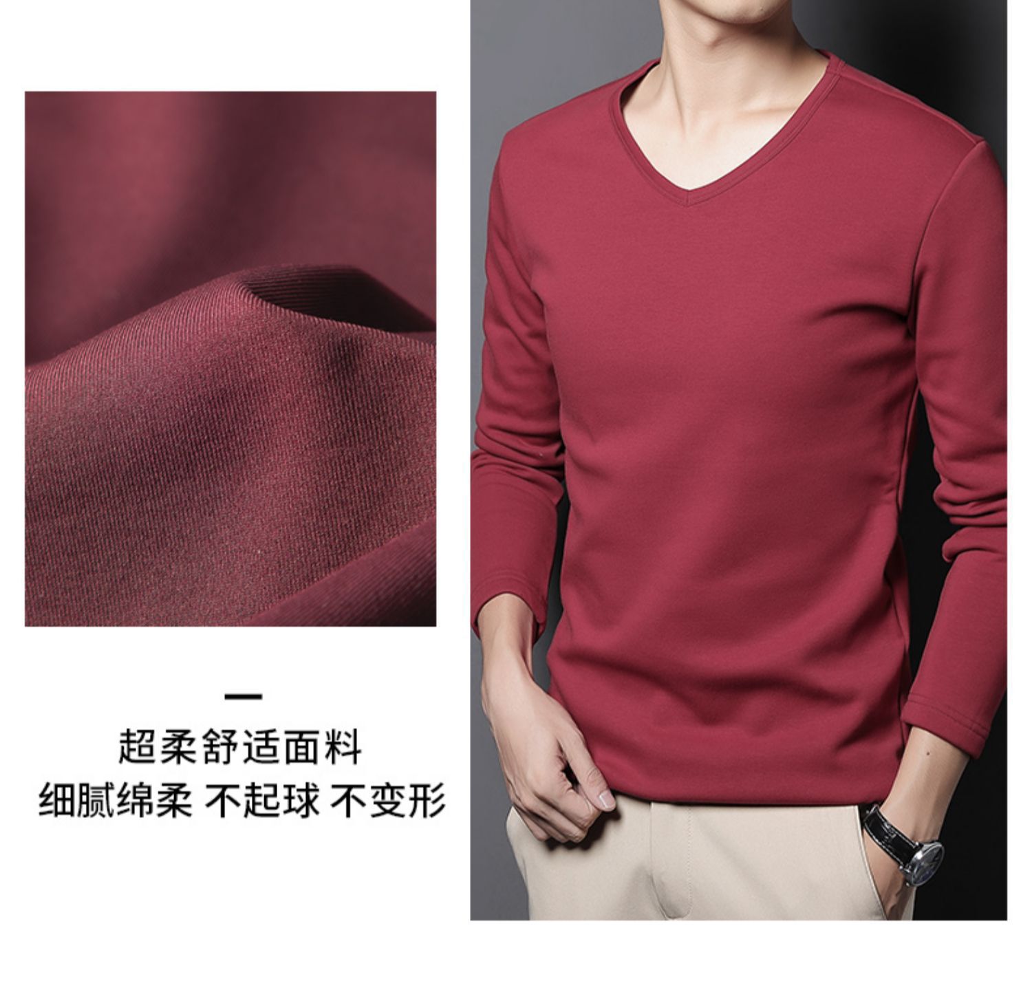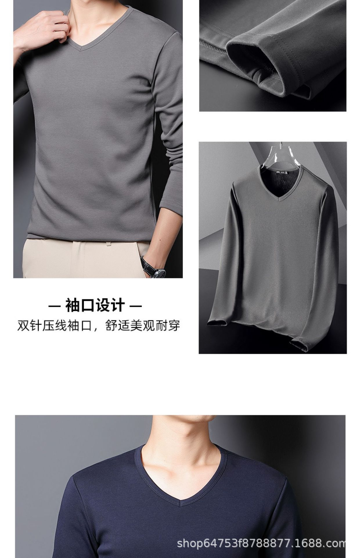 기모 긴팔 티셔츠 남성용 코튼 V 넥 남성용 바닥 셔츠 대외 무역 비즈니스 열 속옷 가을과 겨울 단색 가을 옷스토어 가기