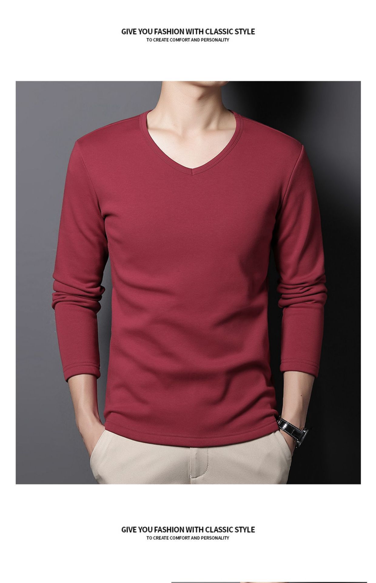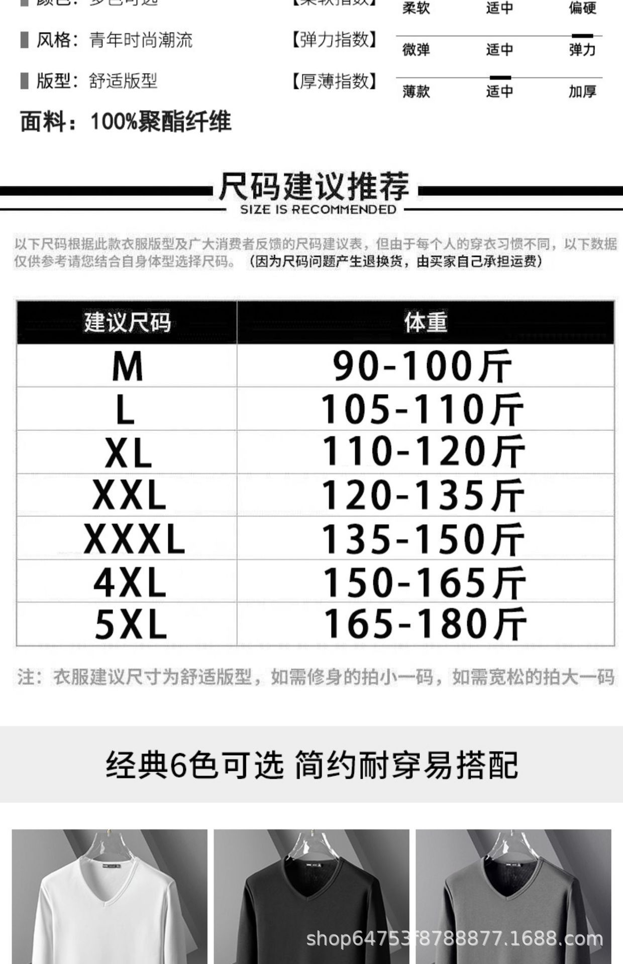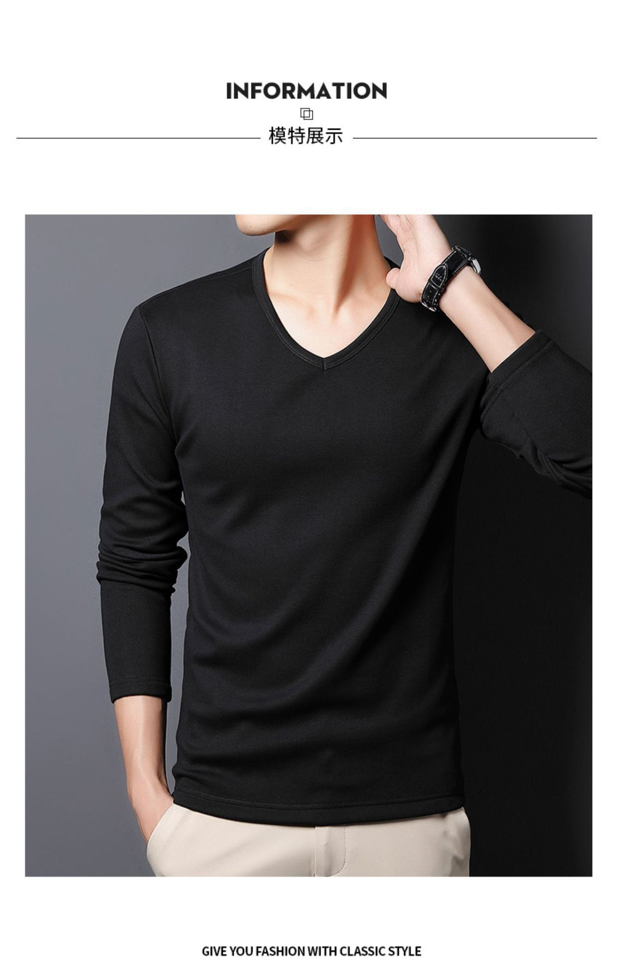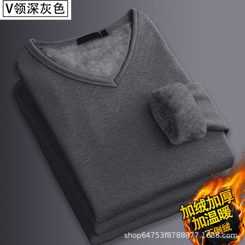 기모 긴팔 티셔츠 남성용 코튼 V 넥 남성용 바닥 셔츠 대외 무역 비즈니스 열 속옷 가을과 겨울 단색 가을 옷스토어 가기