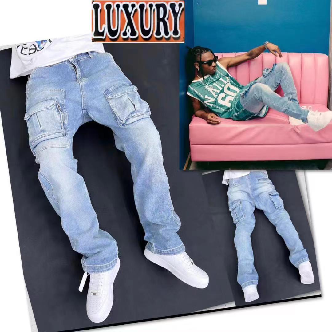 유럽과 미국의 원래 주문 대외 무역 컷 라벨 남성용 품질 클리어런스 라이트 럭셔리 소 오리지널 테일 청바지 남성 바지 1 선 테일 주문스토어 가기