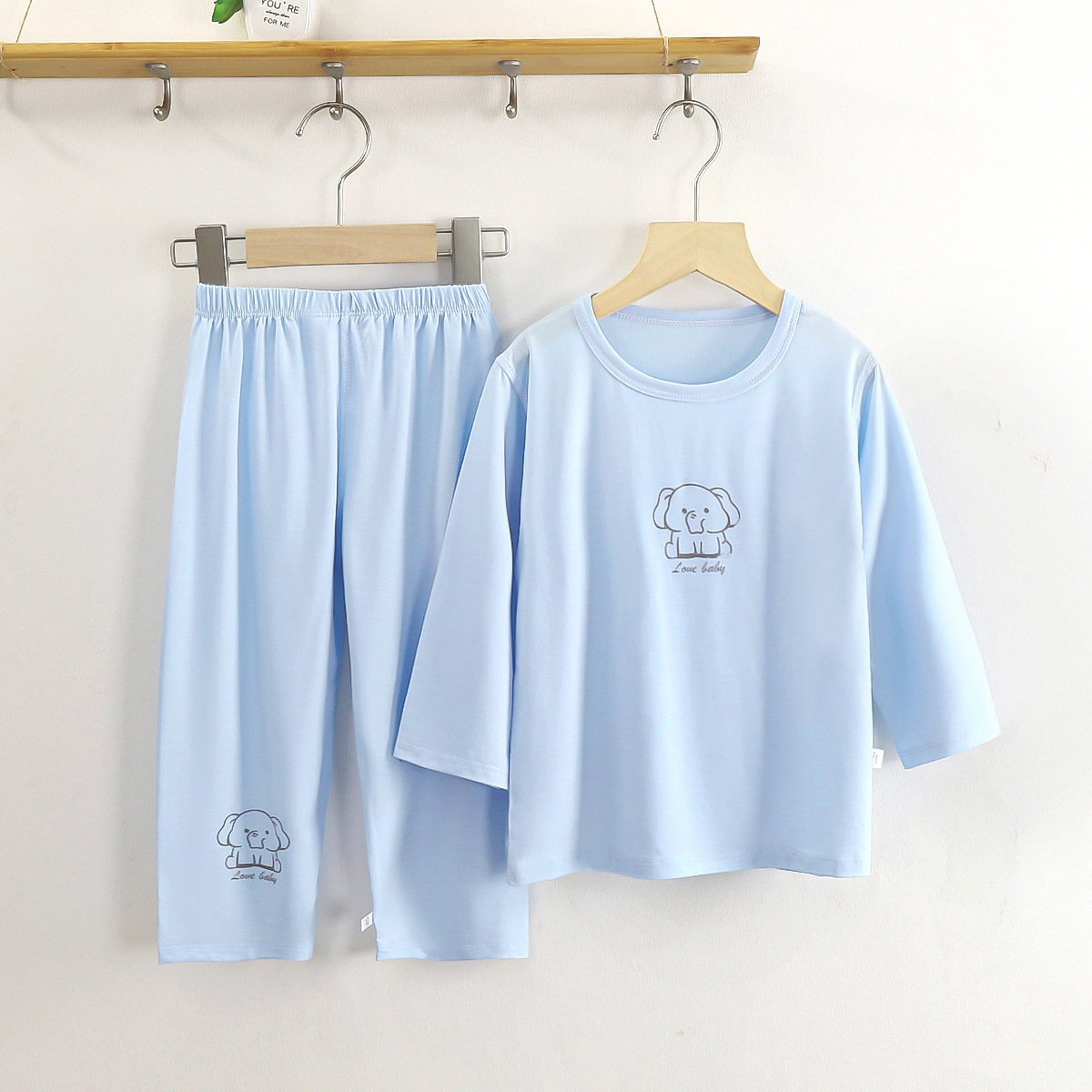 공장 직접 판매 새로운 Tencel 어린이 봄 세트 얇은 소년 수업 아기 잠옷 소녀 속옷 집스토어 가기