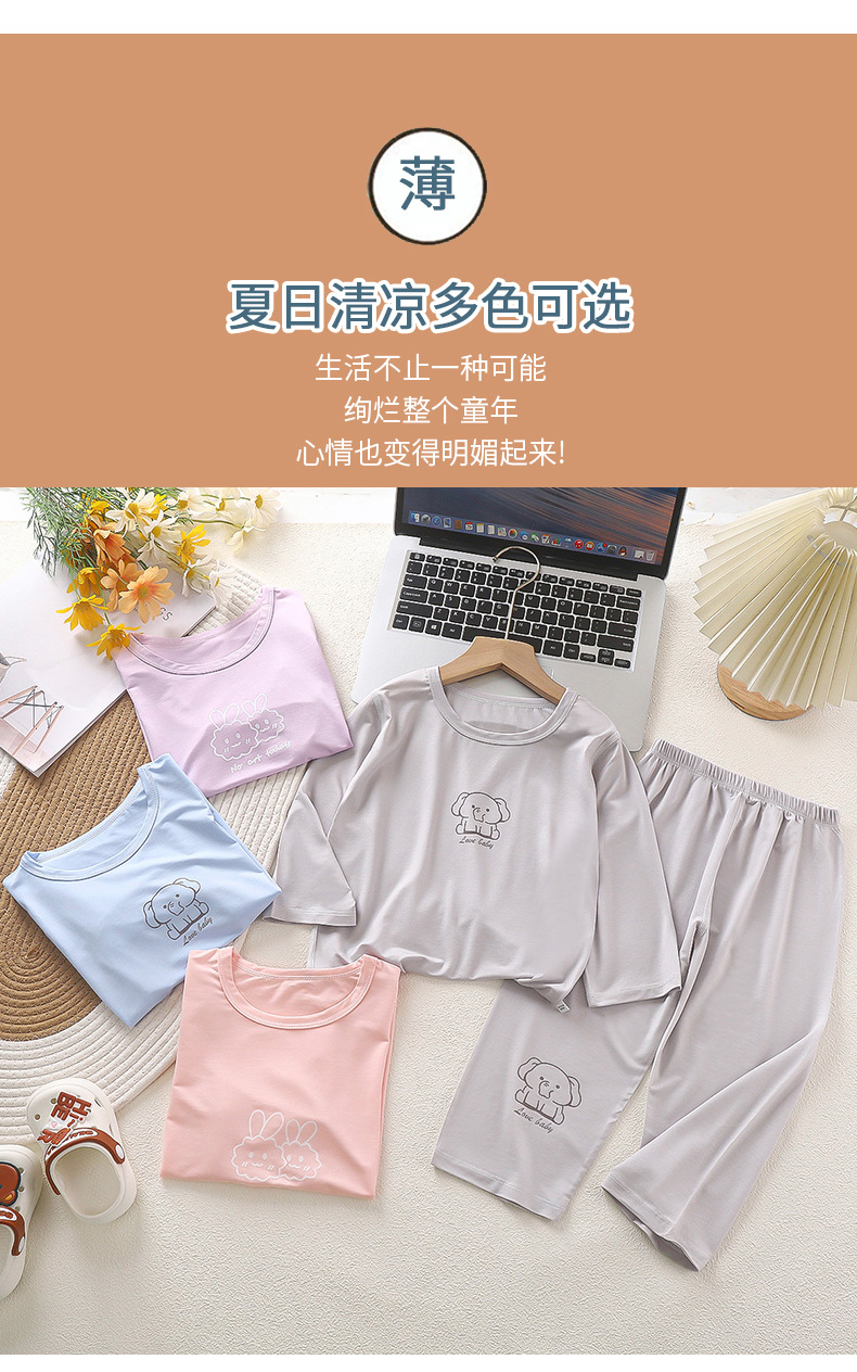 공장 직접 판매 새로운 Tencel 어린이 봄 세트 얇은 소년 수업 아기 잠옷 소녀 속옷 집