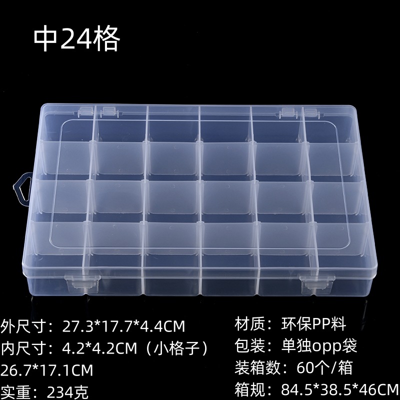 중간 24 그리드 분리 가능한 투명 플라스틱 pp 두꺼운 저장 상자 도구 낚시 기어 비즈 마감 액세서리 포장 상자