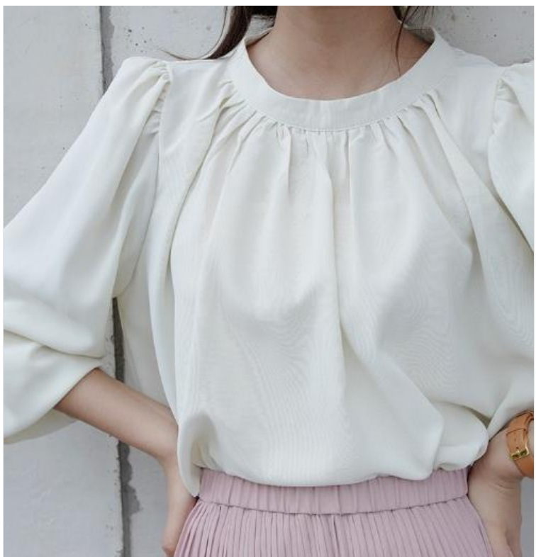 유럽 역 2024 봄 한국 스타일 빠른 건조 비 주름 라운드 터틀넥 퍼프 소매 쉬폰 셔츠 탑스토어 가기