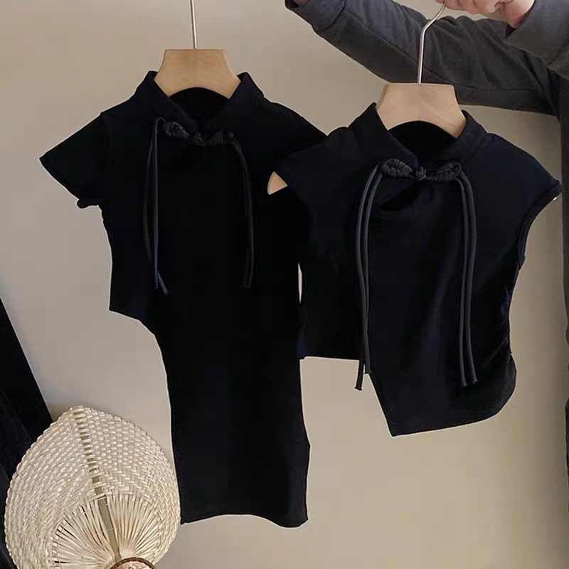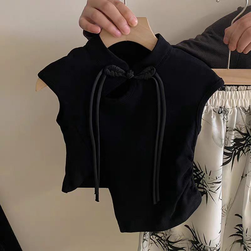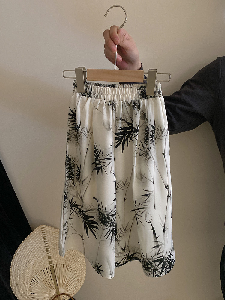 어린이 스타 라운드 새로운 중국 스타일 소녀 세트 버클 내셔널 스타일 패션 최고 기질 대나무 잎 잉크 그림 넓은 다리 바지 세트스토어 가기