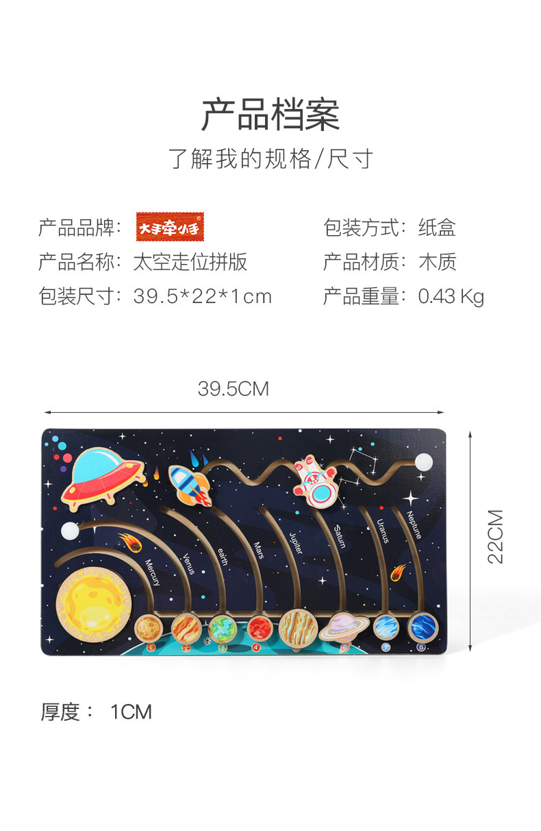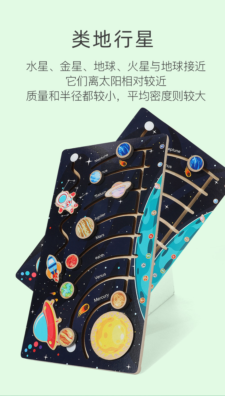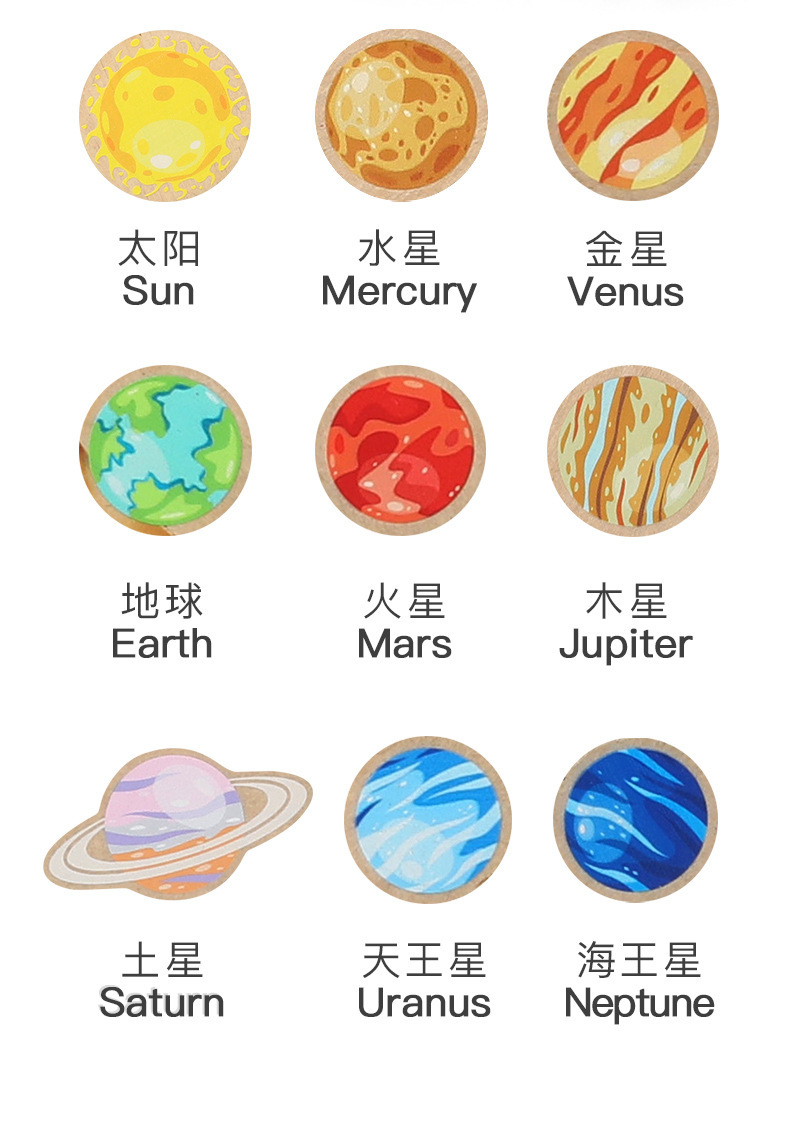 Weiwihu 우주 움직임 퍼즐 나무 행성 퍼즐 매칭 보드 행성 인식 어린이 조기 교육 교육 장난감스토어 가기