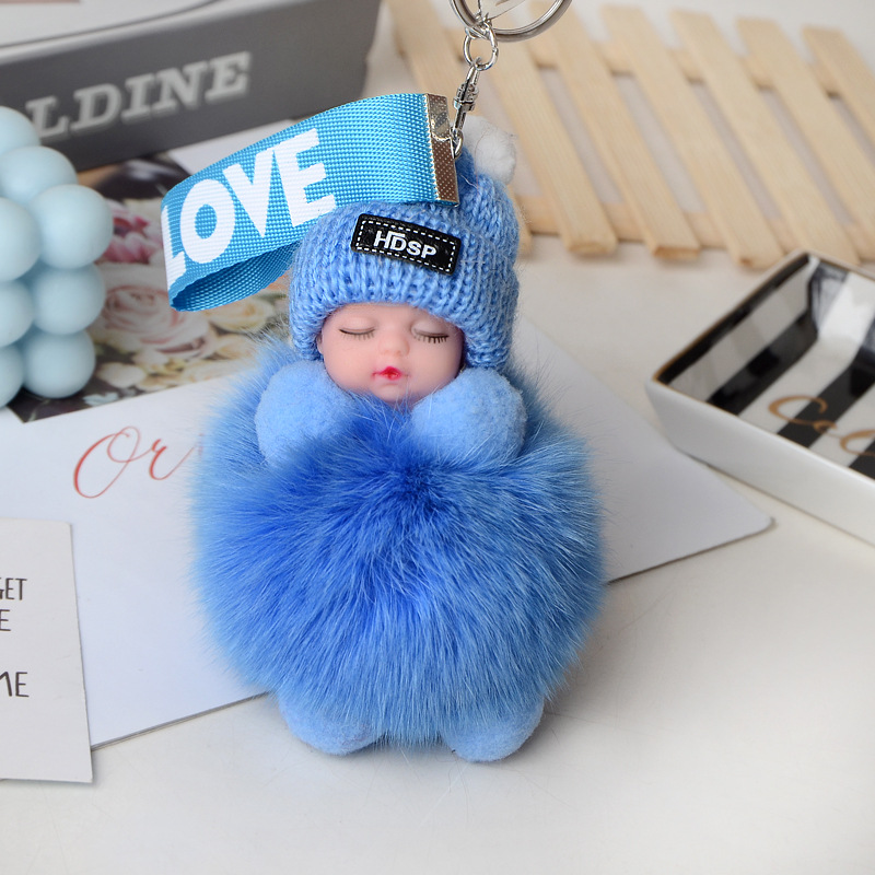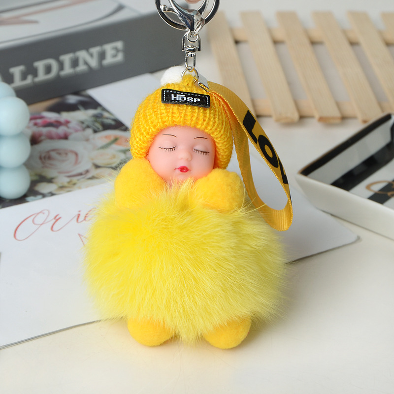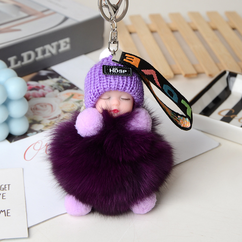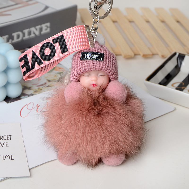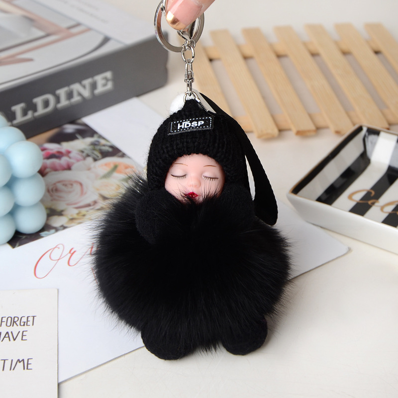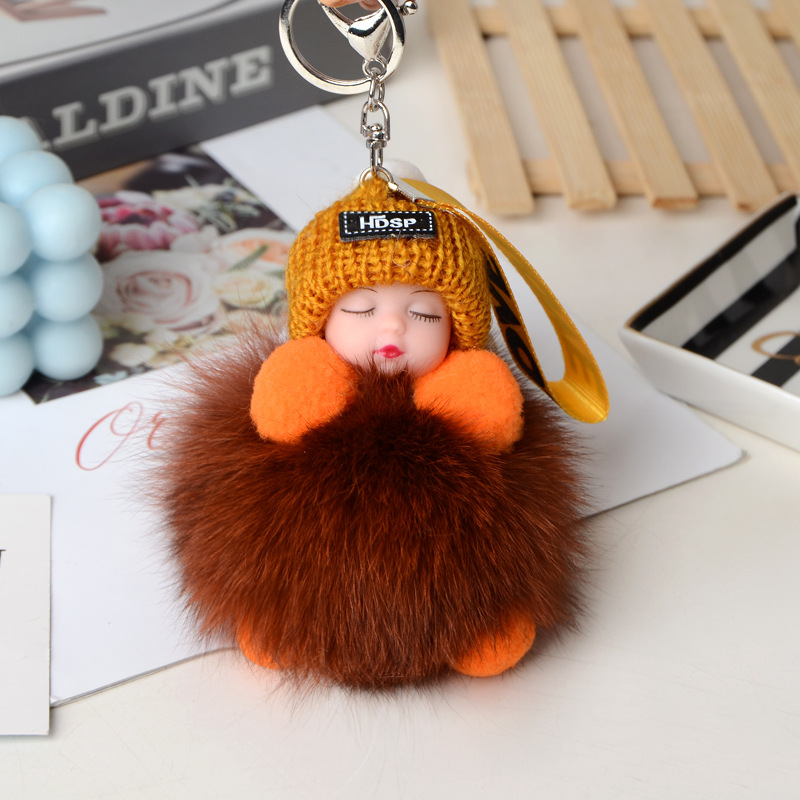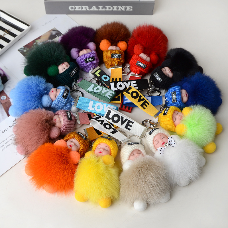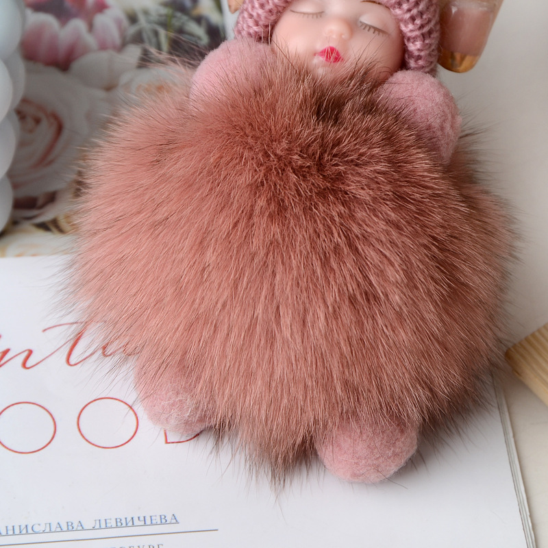 여우털 볼 펜던트 귀여운 봉제 인형 펜던트 수면 인형 아기 자동차 키체인 가방 장식품