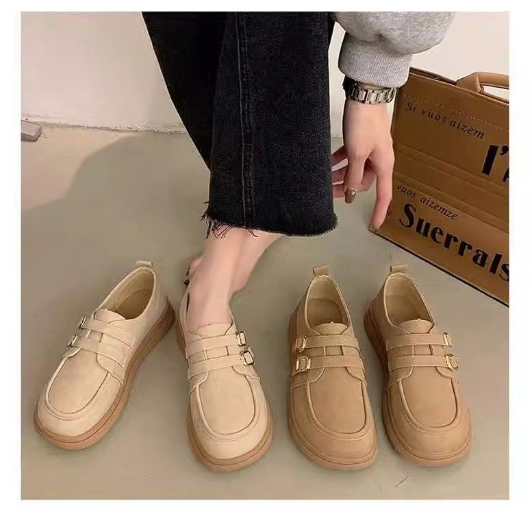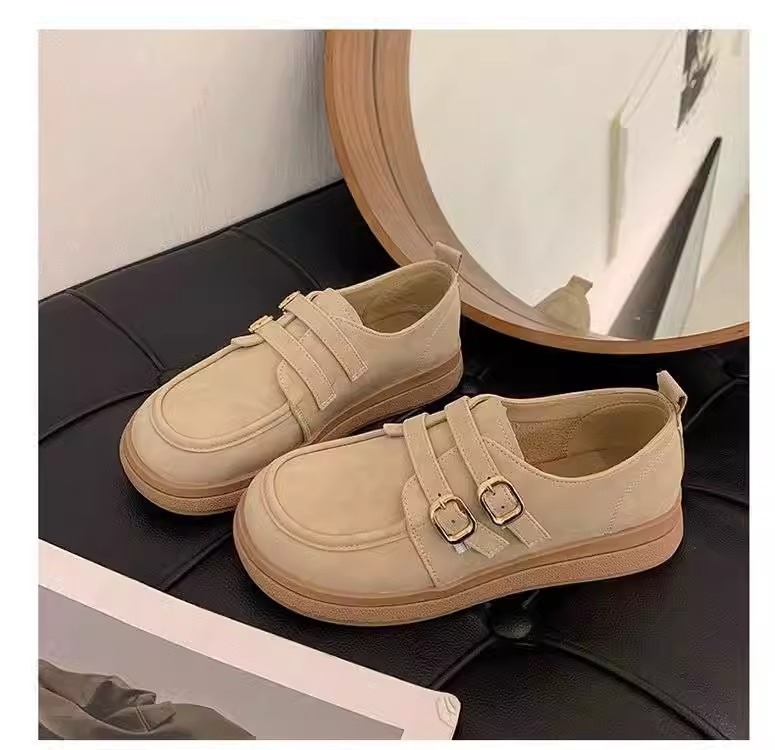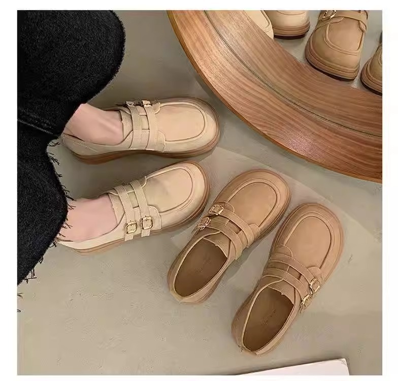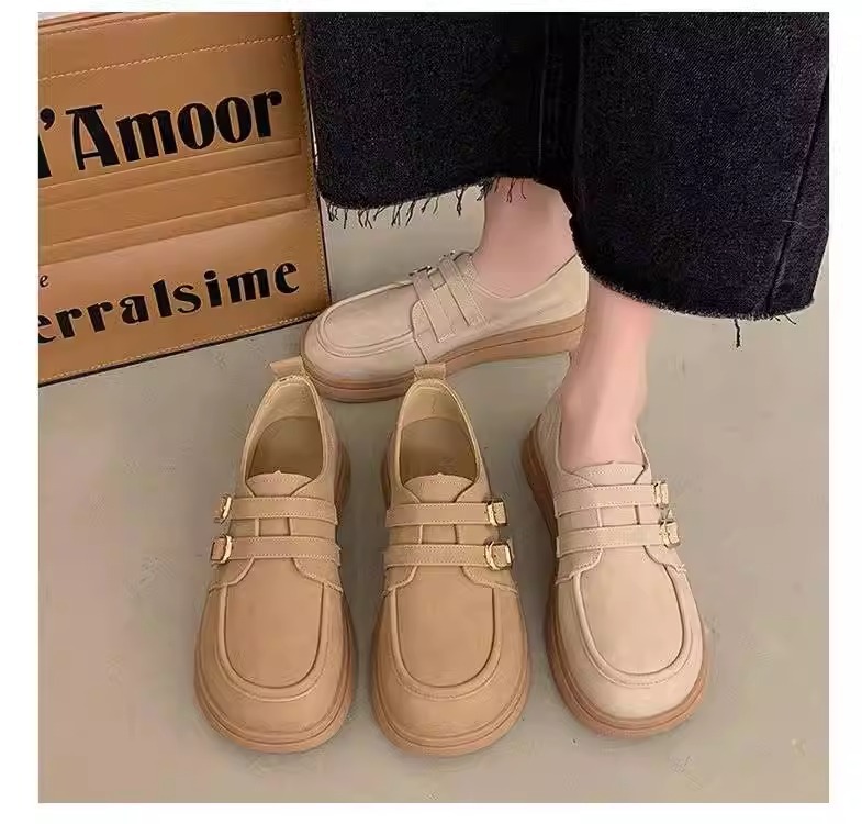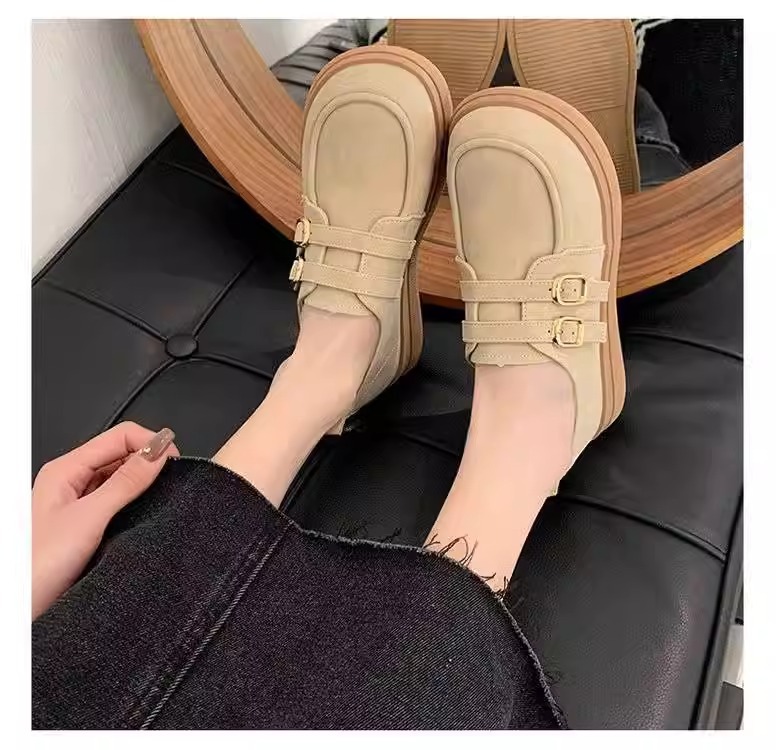 2024 Maillard 스타일 가죽 신발 여성 캐주얼 싱글 레이어 신발 봄 새로운 올 매치 싱글 레이어 신발 두꺼운 바닥 게으른 슬립 온스토어 가기