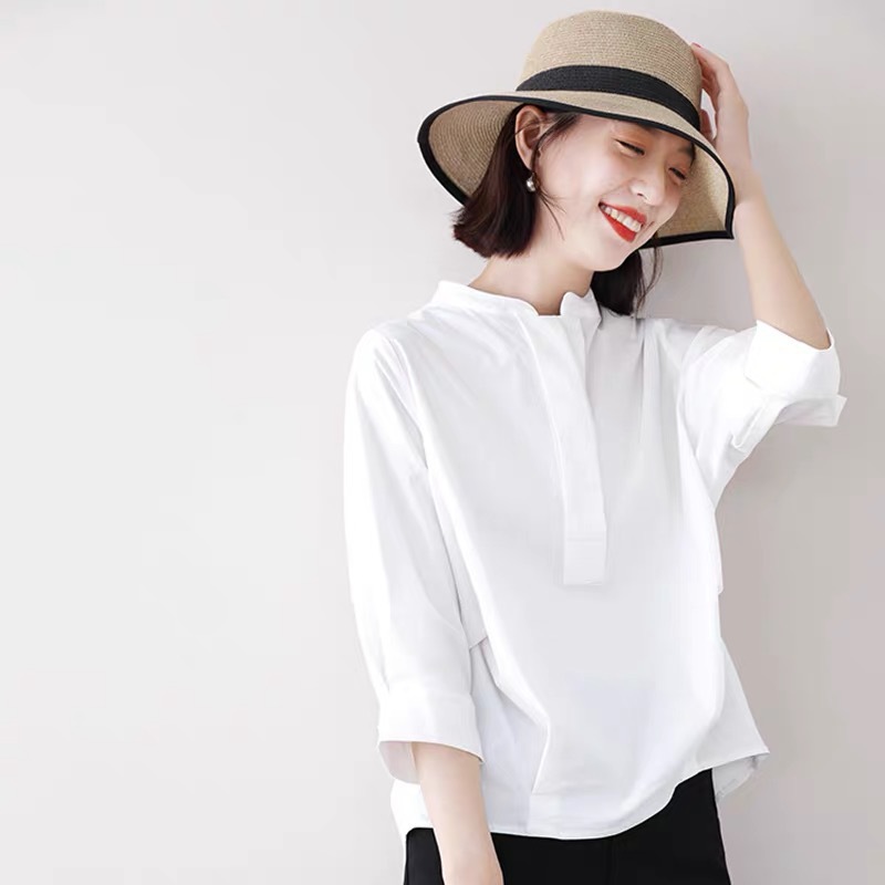 2023 일본식 가벼운 고급 흰색 셔츠 여성 디자인 감각 틈새 유행 3/4 소매 작은 느슨한 셔츠