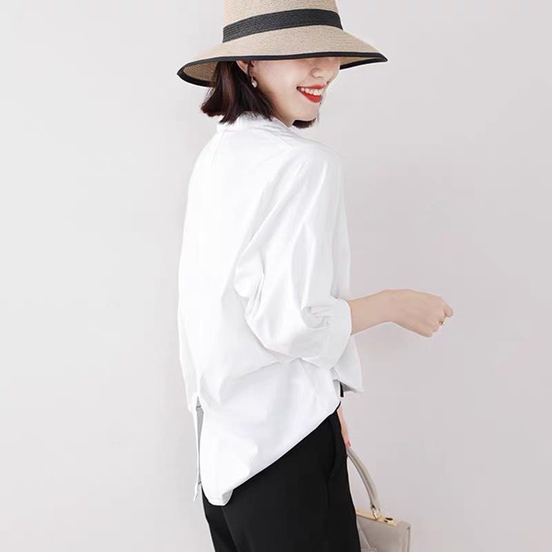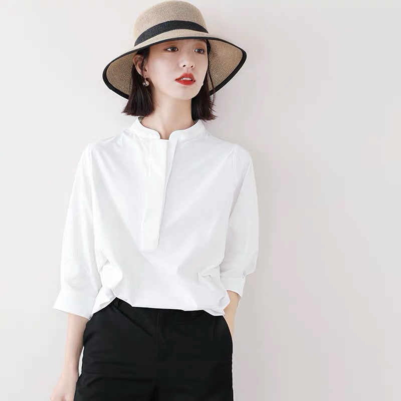 2023 일본식 가벼운 고급 흰색 셔츠 여성 디자인 감각 틈새 유행 3/4 소매 작은 느슨한 셔츠스토어 가기