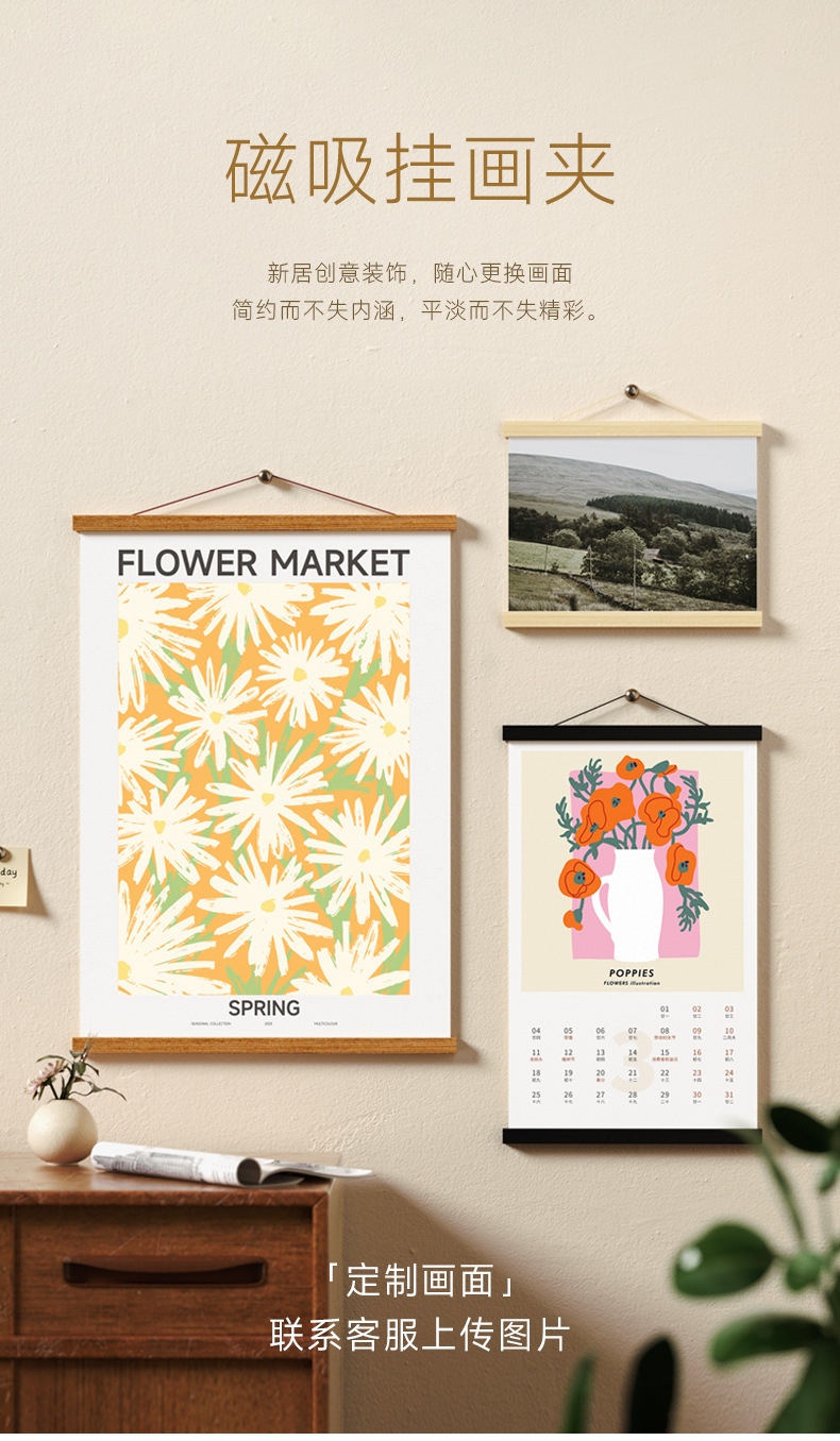 창조적 인 다기능 마그네틱 교수형 사진 클립 광고 포스터 프레임 비 천공 아크릴 나무 사진 프레임 도매
