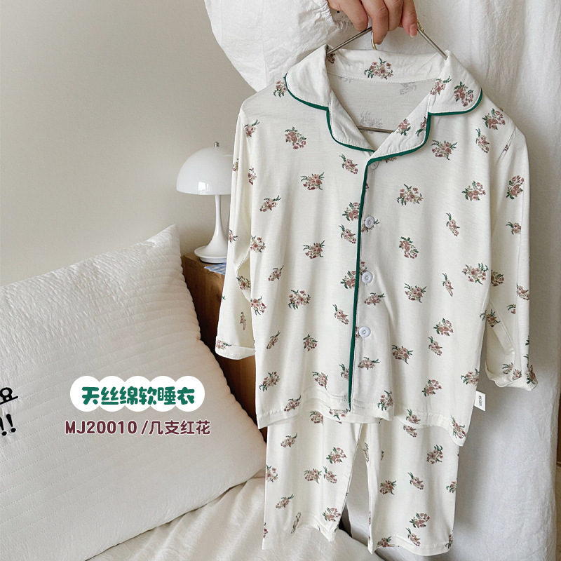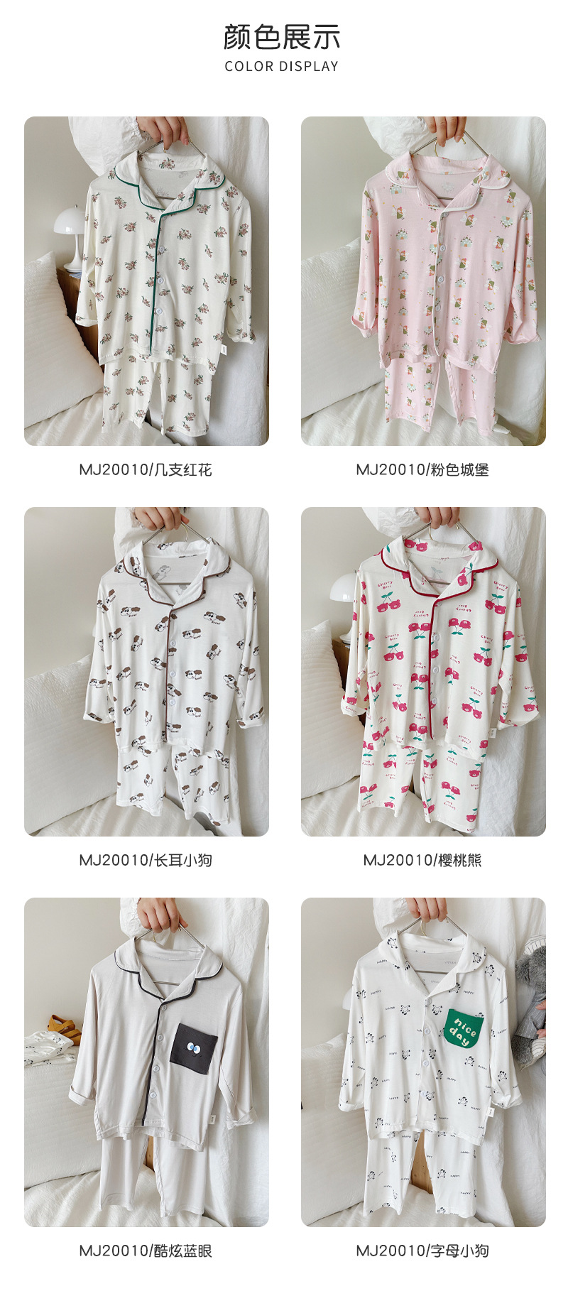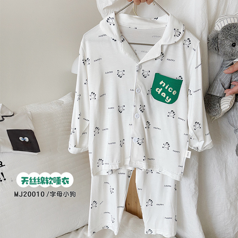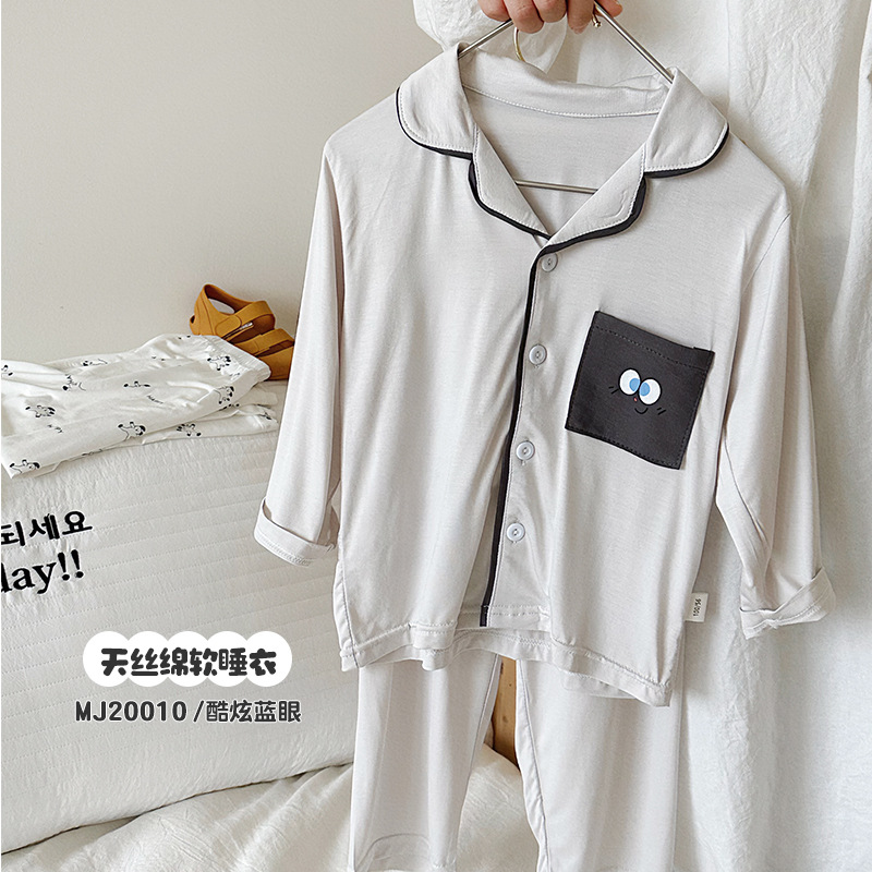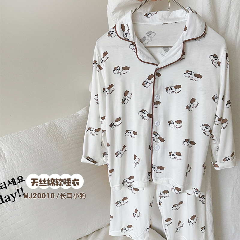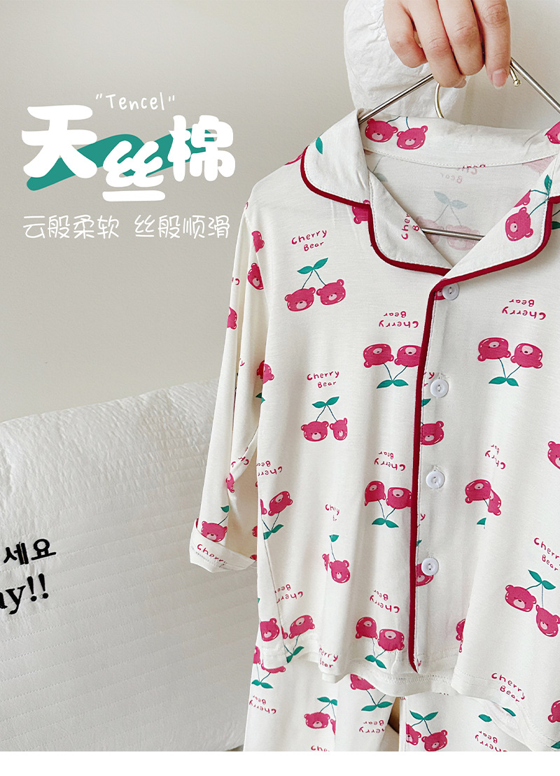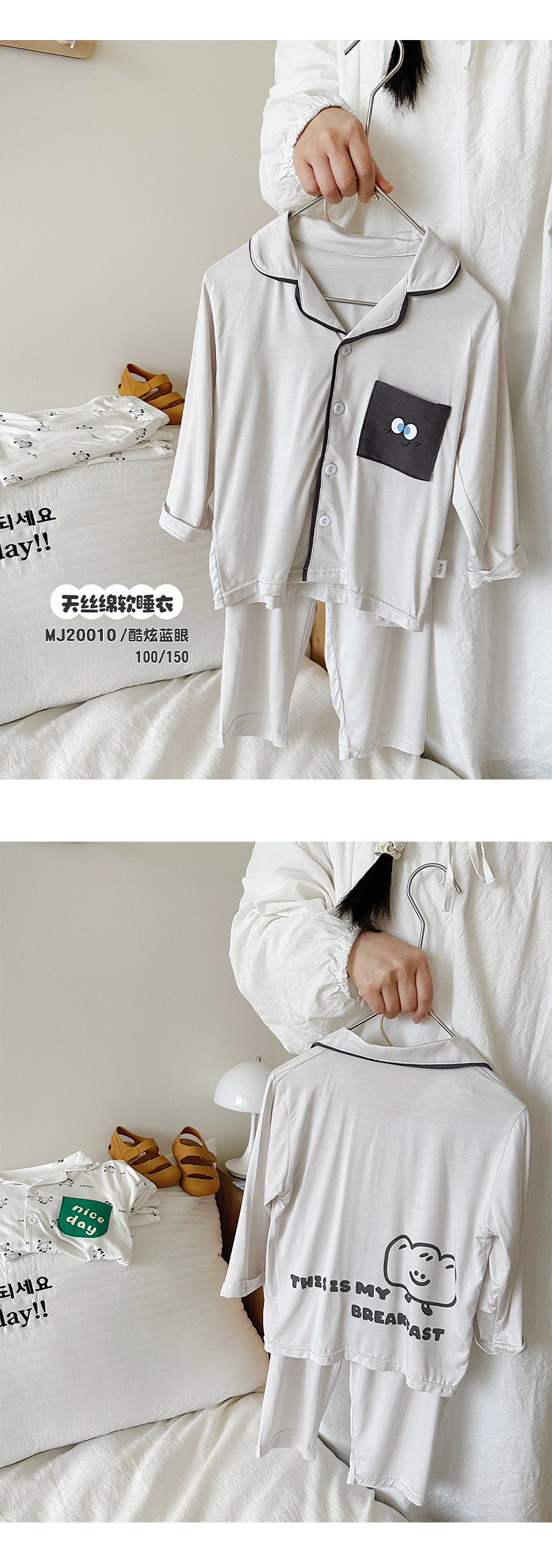 빵토끼 만화 코트 파자마 바지 2024 봄과 여름 새로운 텐셀 파자마 소년 소녀 홈웨어 세트스토어 가기