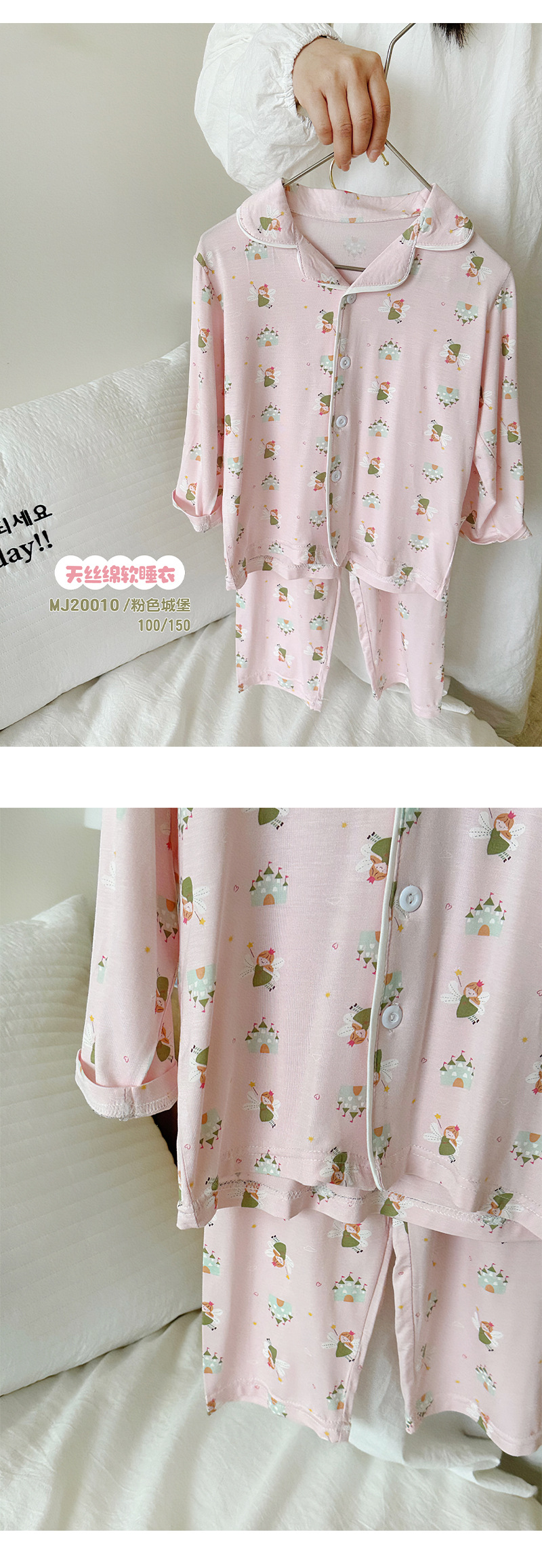 빵토끼 만화 코트 파자마 바지 2024 봄과 여름 새로운 텐셀 파자마 소년 소녀 홈웨어 세트