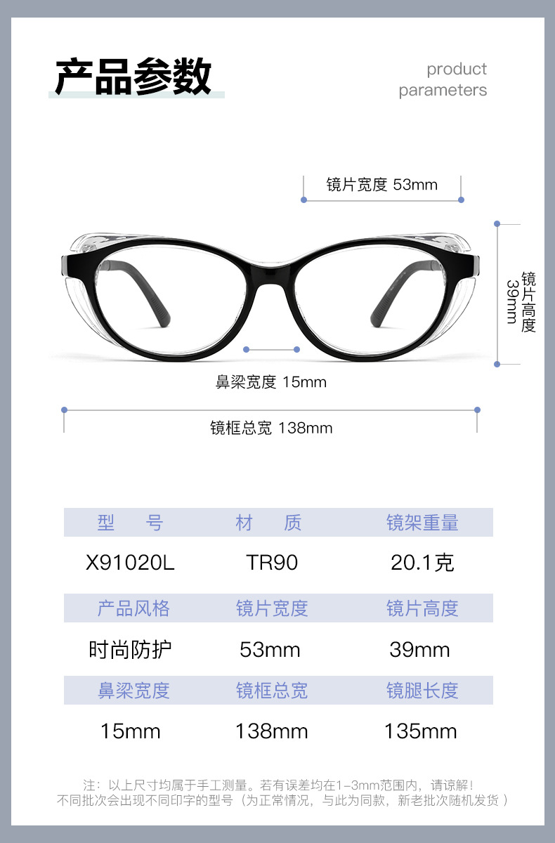 Baishifen X91020L 초경량 TR90 방풍 방지 방지 꽃가루 수술 후 고글 안티 스플래시 안경 프레임