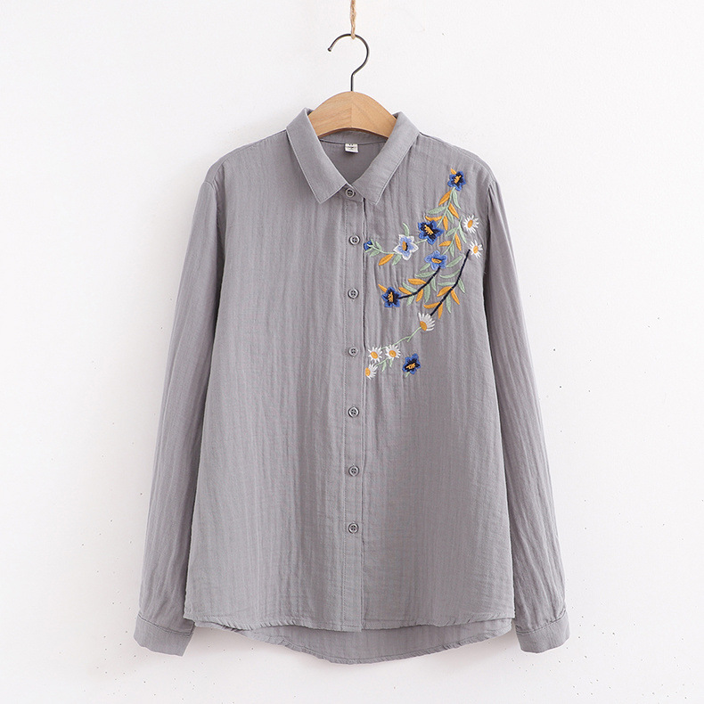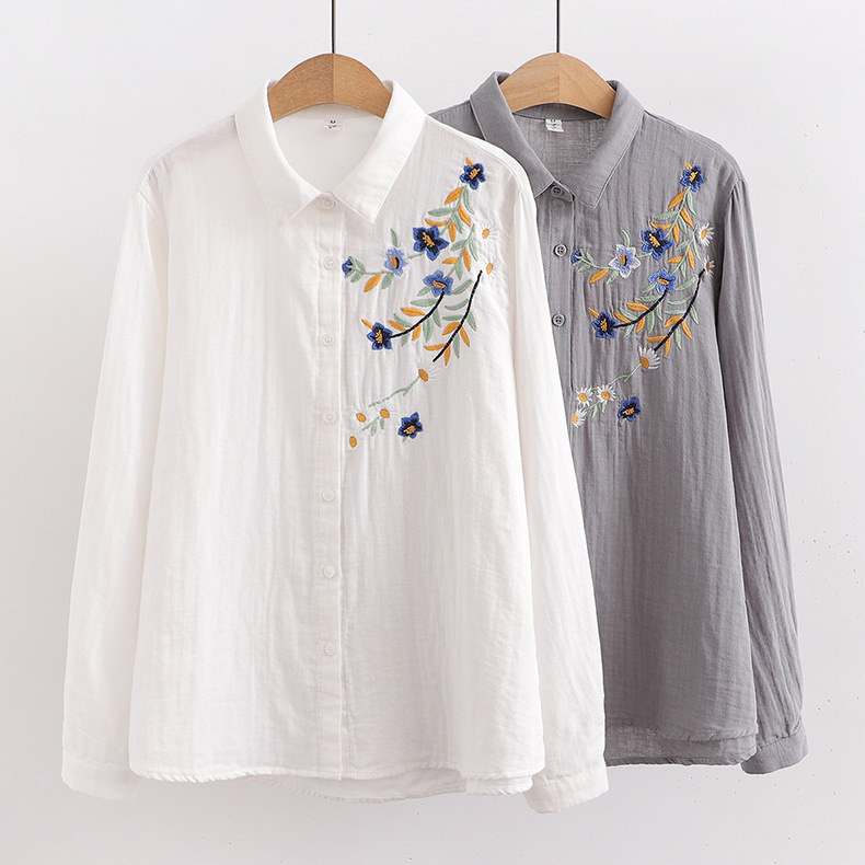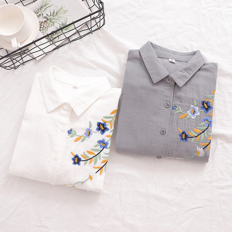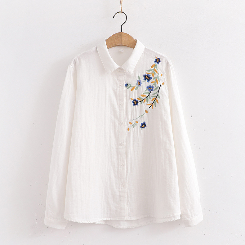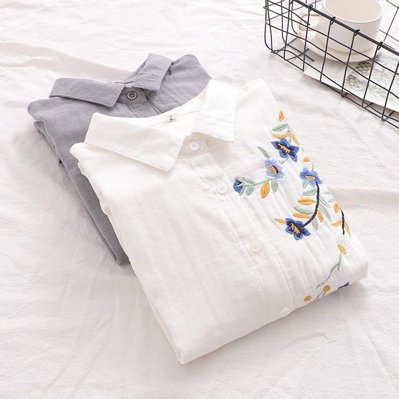 일본 모리 소녀 새로운 만화 지점 자수 더블 레이어 원사 여성용 카디건 셔츠 긴팔 탑스토어 가기