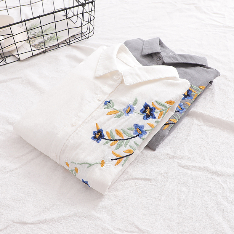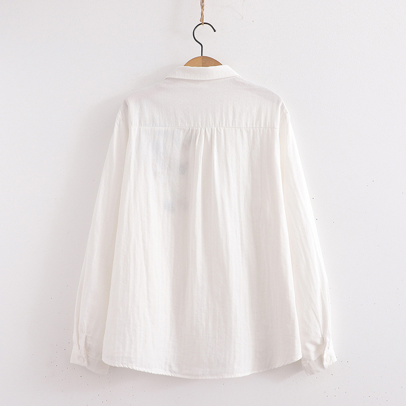 일본 모리 소녀 새로운 만화 지점 자수 더블 레이어 원사 여성용 카디건 셔츠 긴팔 탑