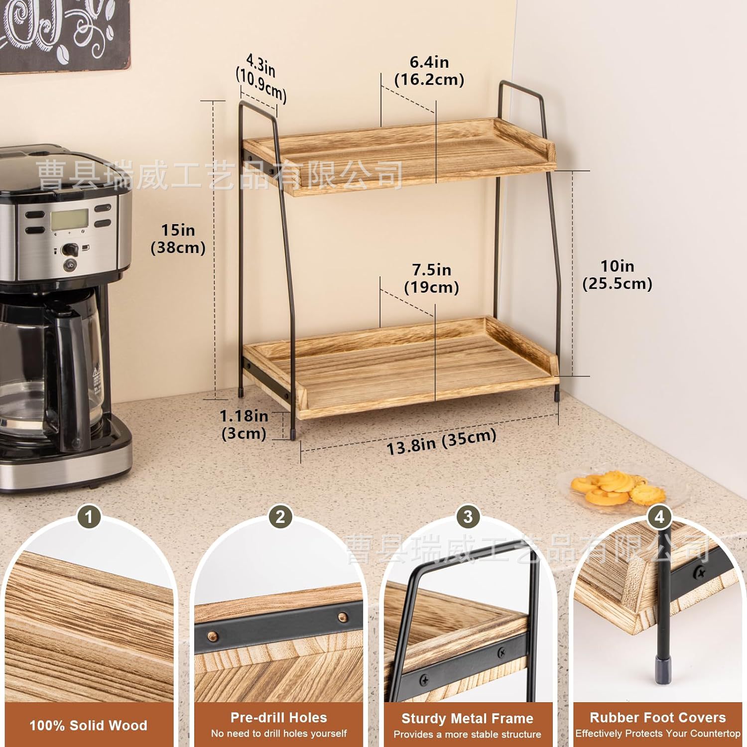 나무 커피 플랫폼 선반 커피 바 스토리지 랙 더블 레이어 스토리지 랙 나무 부엌 캐비닛 선반