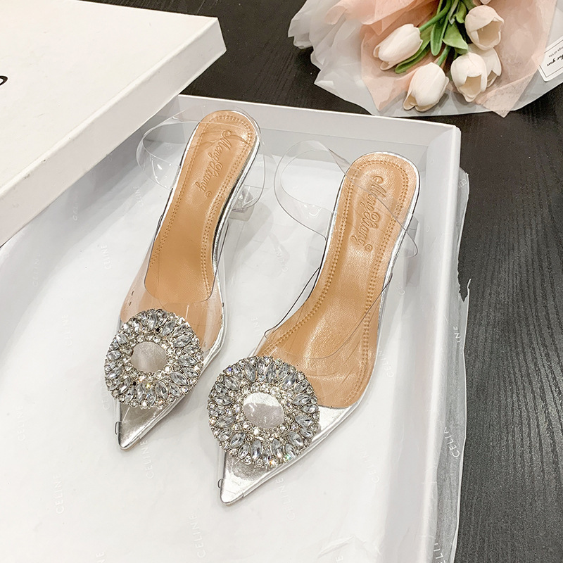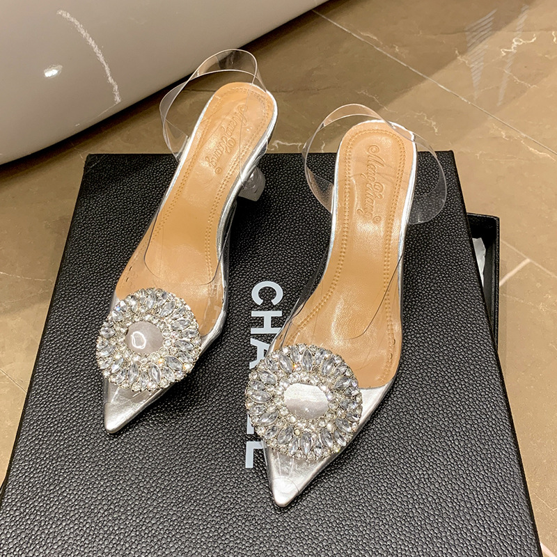 대외 무역 플러스 사이즈 샌들 여성 그물 레드 요정 스타일 여성의 여름 다재다능한 패션 신발 발가락 모조 다이아몬드 투명 청키 힐 하이힐