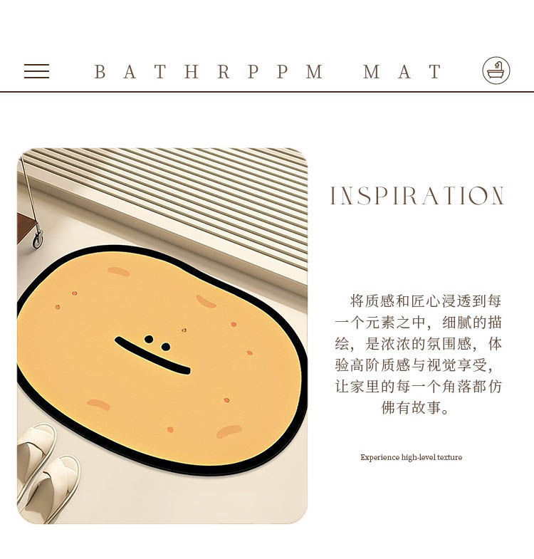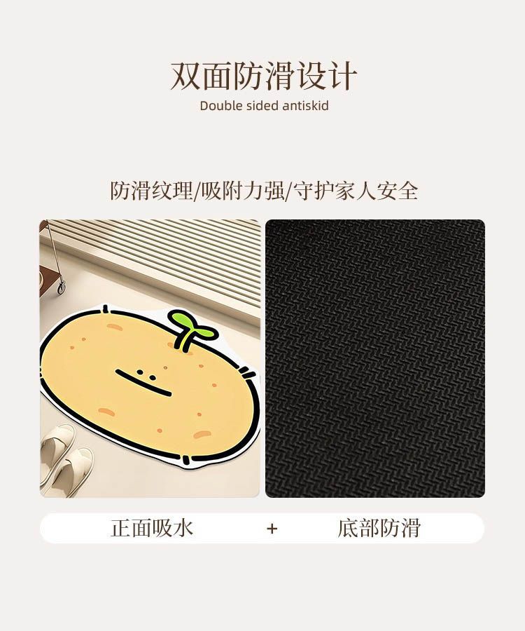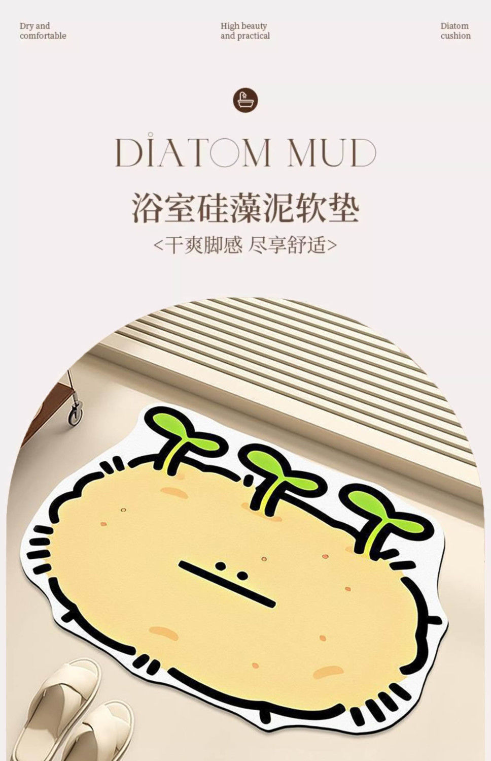 Diatom 진흙 바닥 매트 만화 발아 감자 흡수성 미끄럼 방지 욕실 바닥 매트 홈 욕실 내마모성 얼룩 방지 바닥 매트스토어 가기
