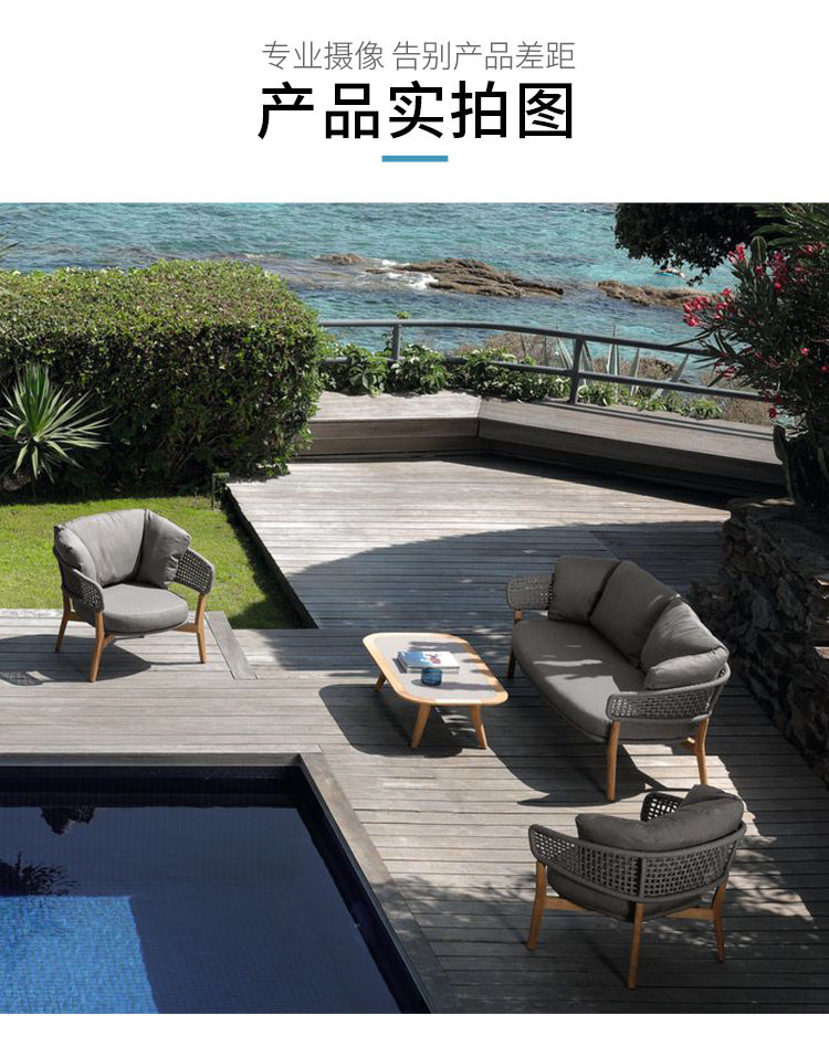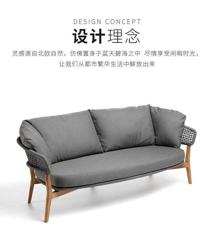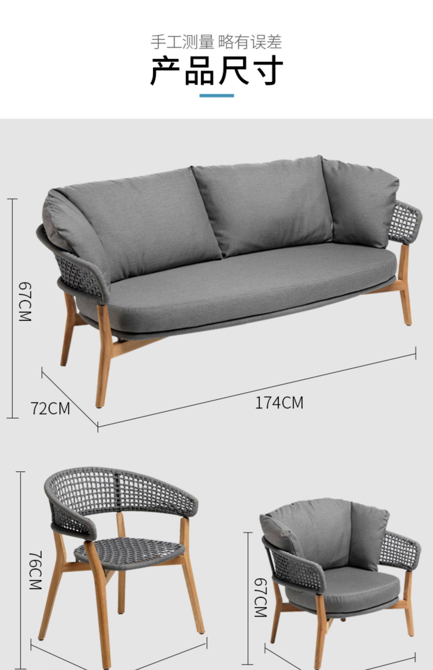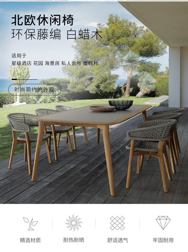 야외 안뜰 단단한 나무 소파 노르딕 빌라 가구 창조적 인 레저 테라스 발코니 모델 룸 조합 등나무스토어 가기