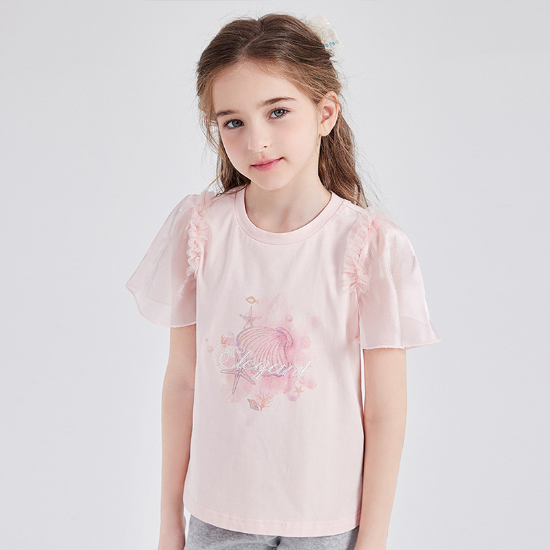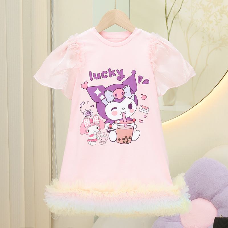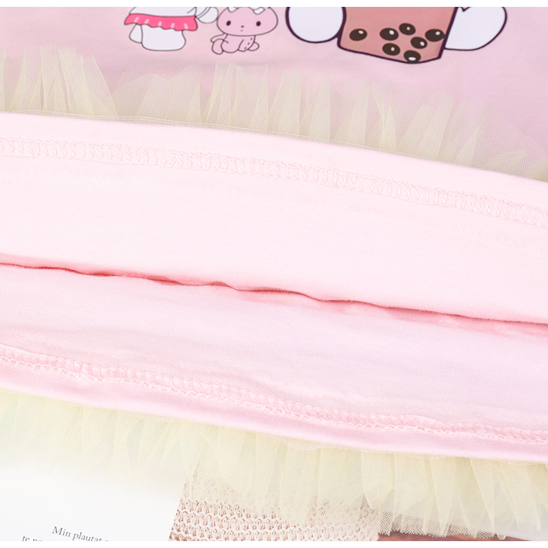 2024 년 새 여자 땀 원피스 여름 한국 스타일 어린이 원피스 아기 어린 소녀의 짧은 소매 메시 원피스