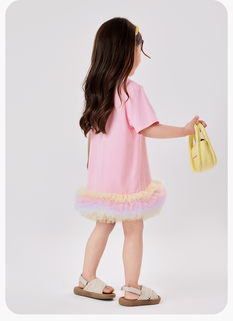 2024 년 새 여자 땀 원피스 여름 한국 스타일 어린이 원피스 아기 어린 소녀의 짧은 소매 메시 원피스스토어 가기