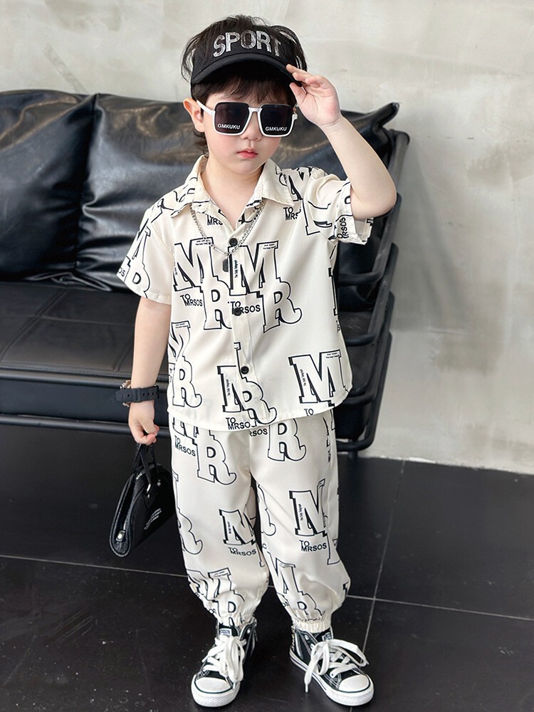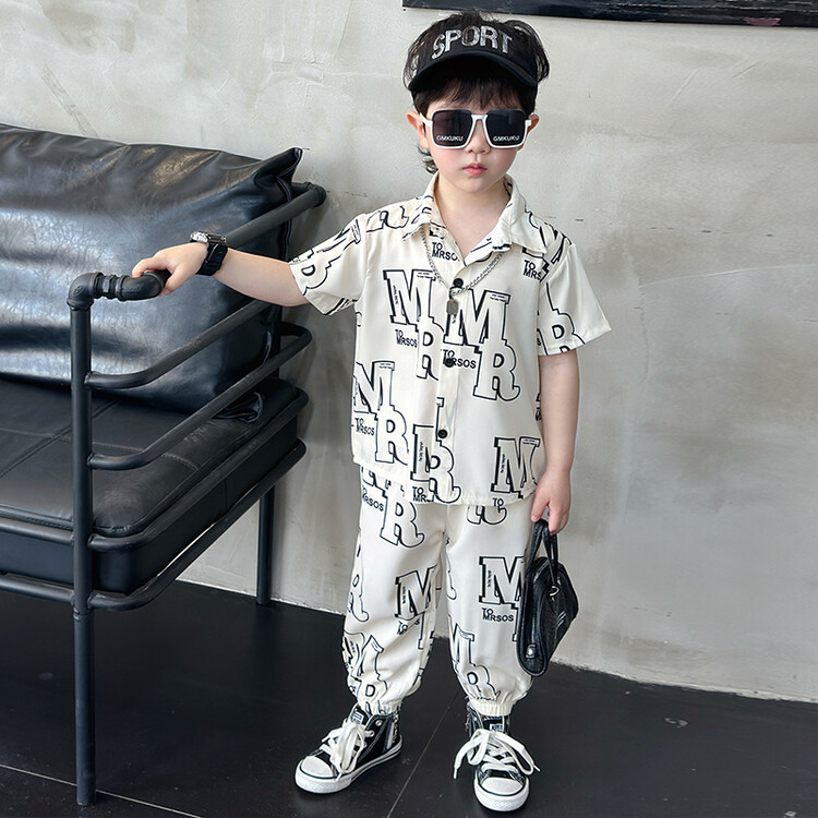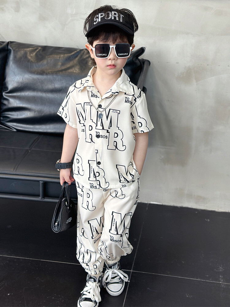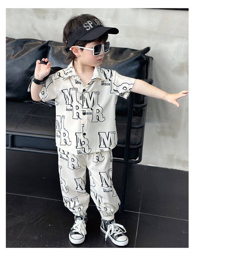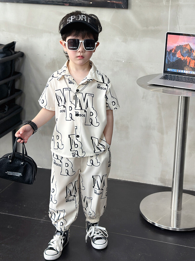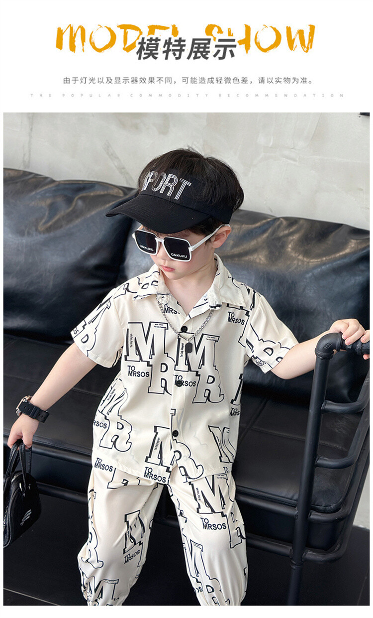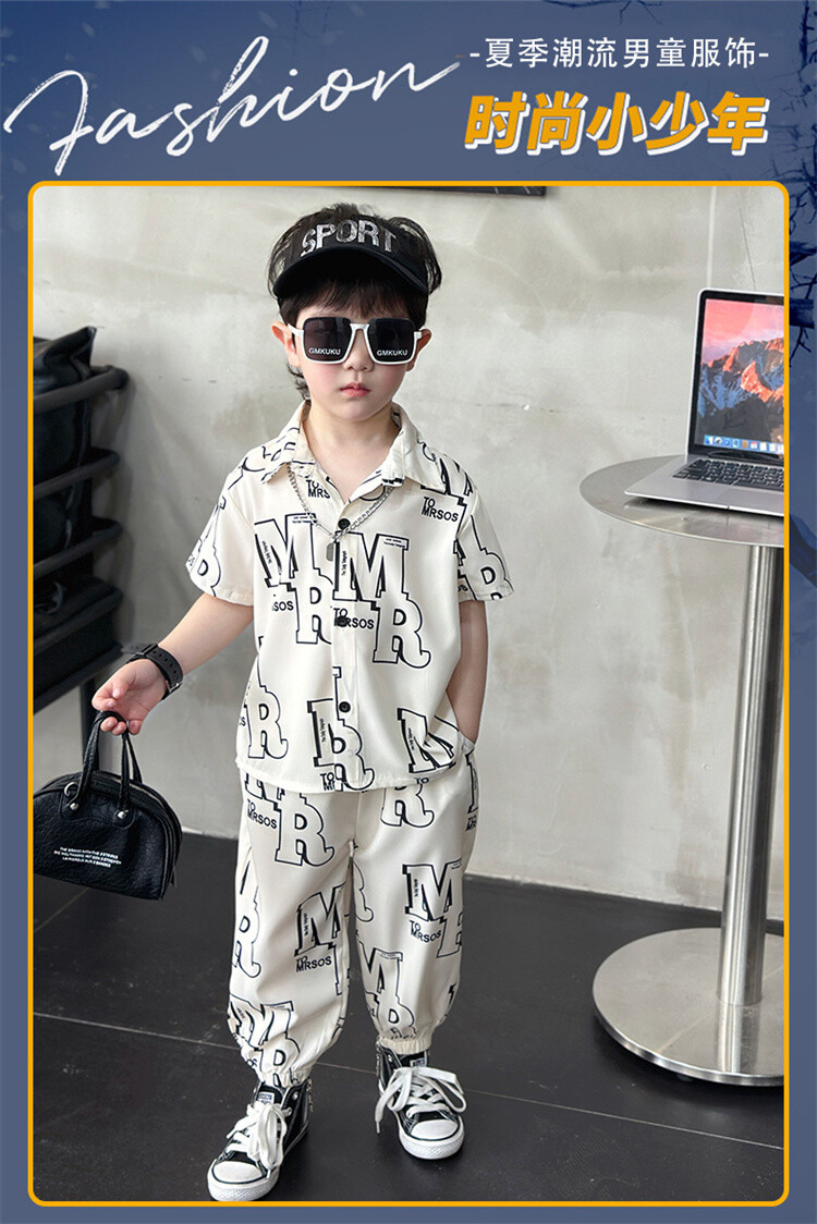 소년의 모기 방지 바지 세트 2024 여름 새 어린이 반팔 셔츠 투피스 세트 중형 및 대형 아동복 도매스토어 가기