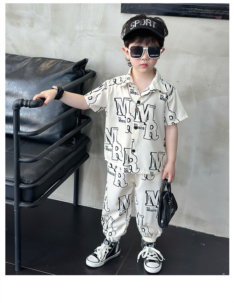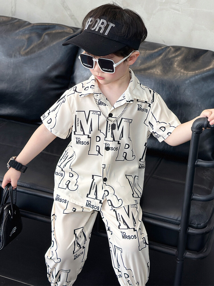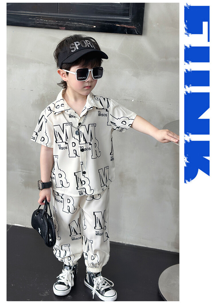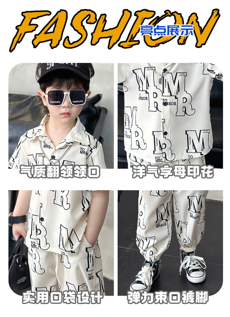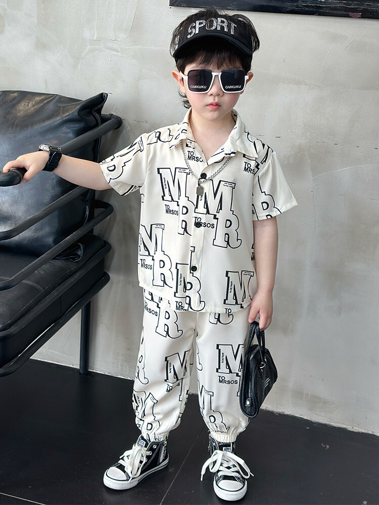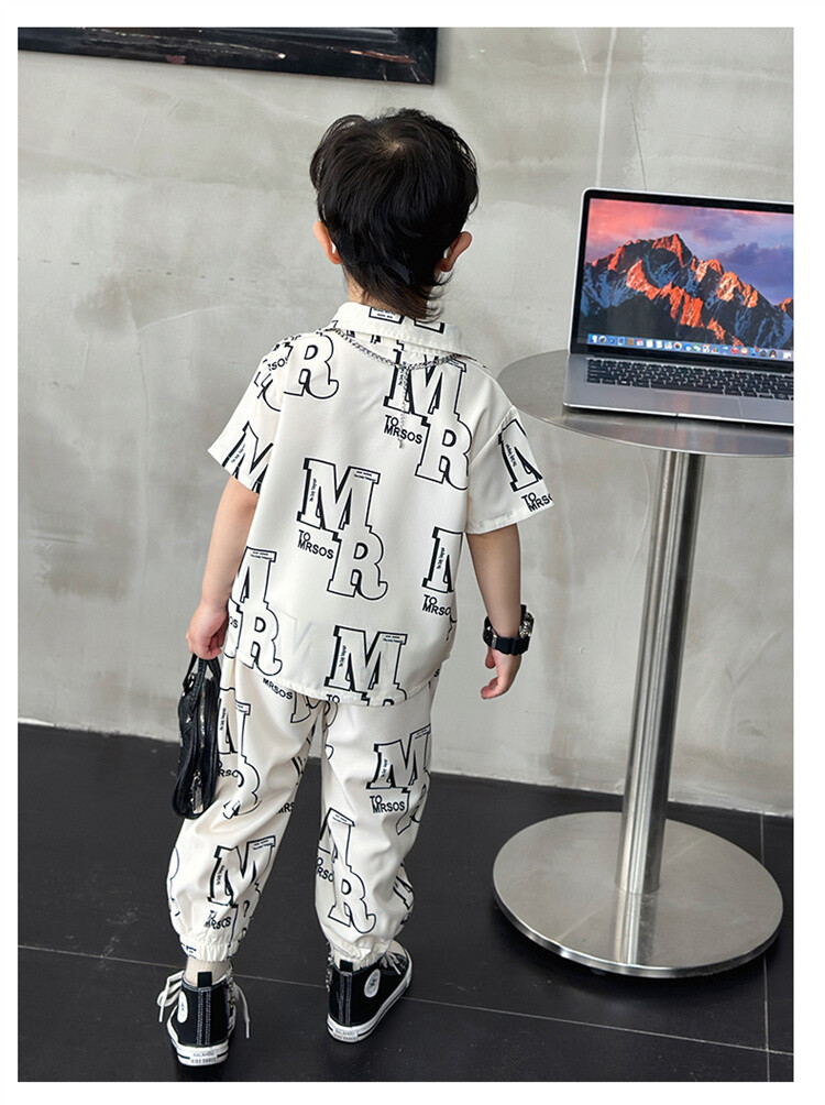 소년의 모기 방지 바지 세트 2024 여름 새 어린이 반팔 셔츠 투피스 세트 중형 및 대형 아동복 도매스토어 가기