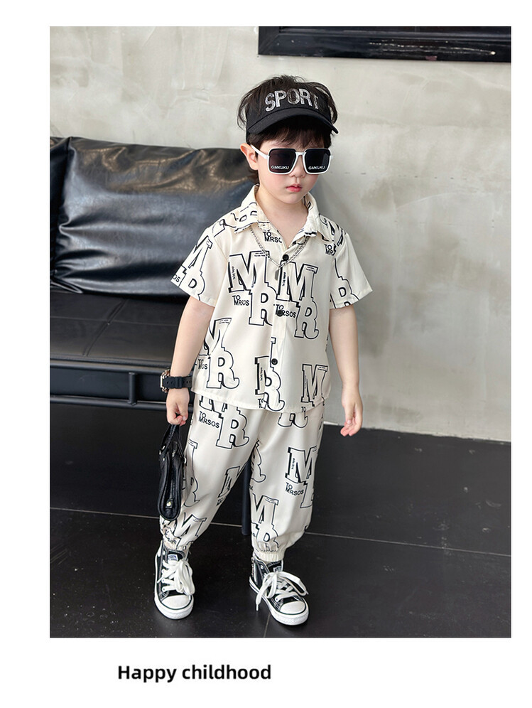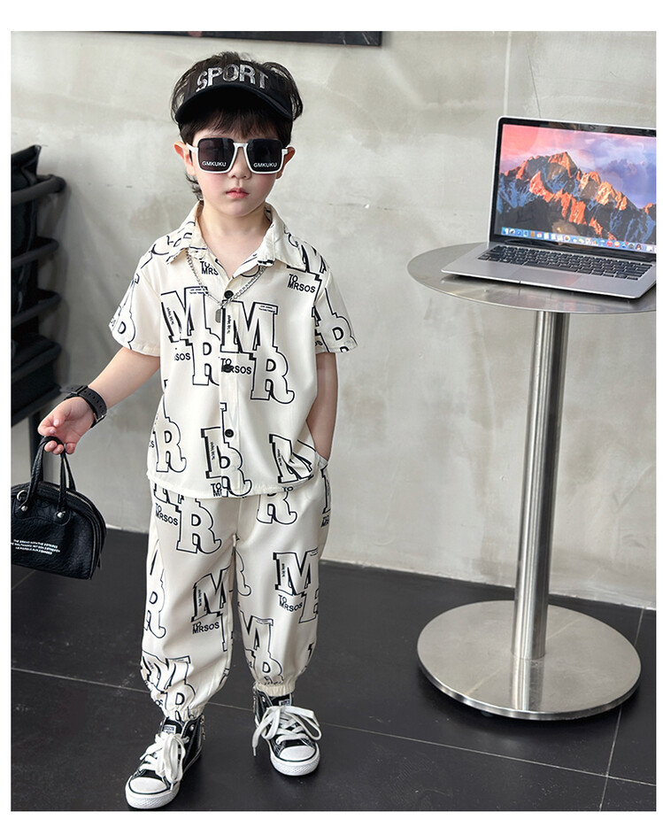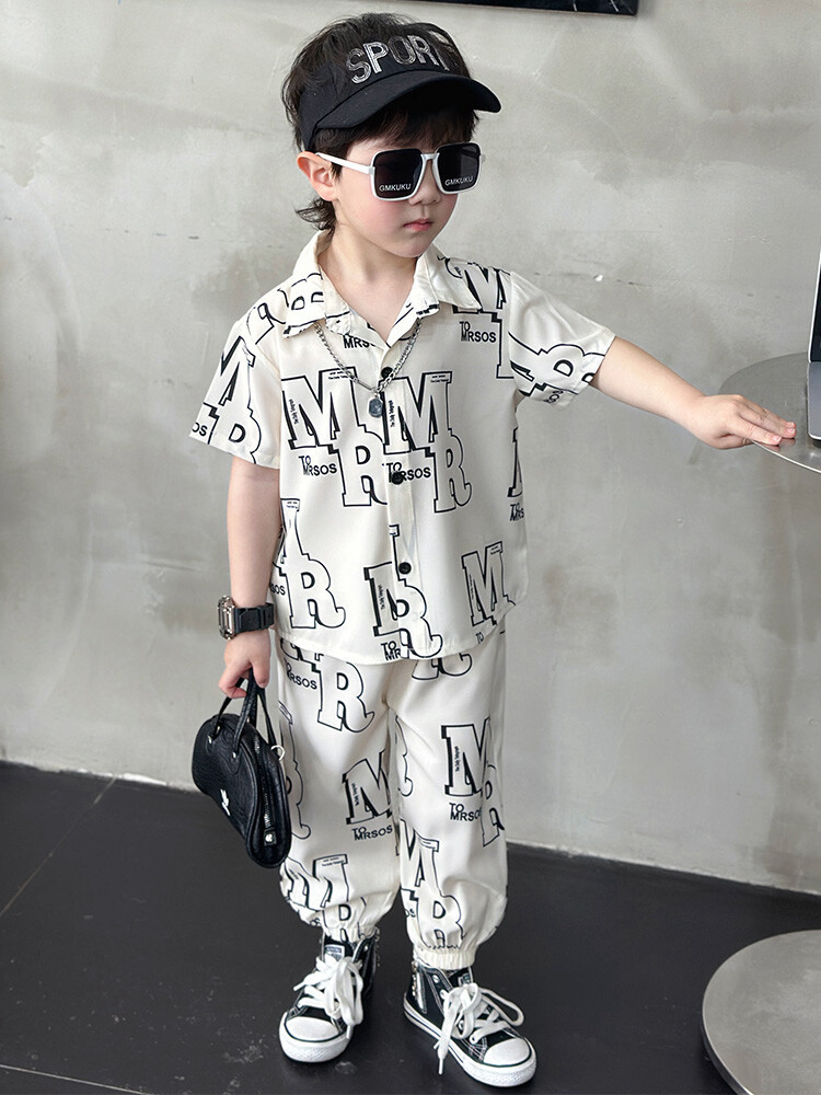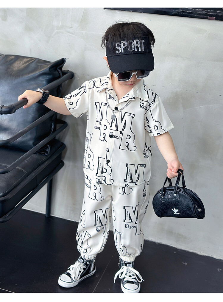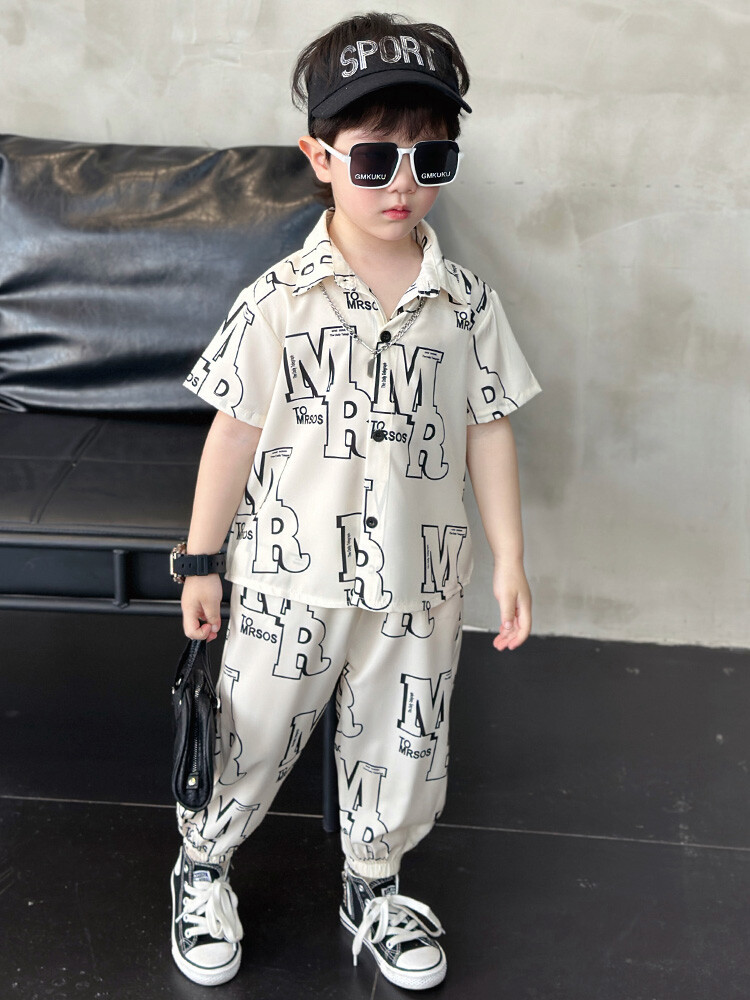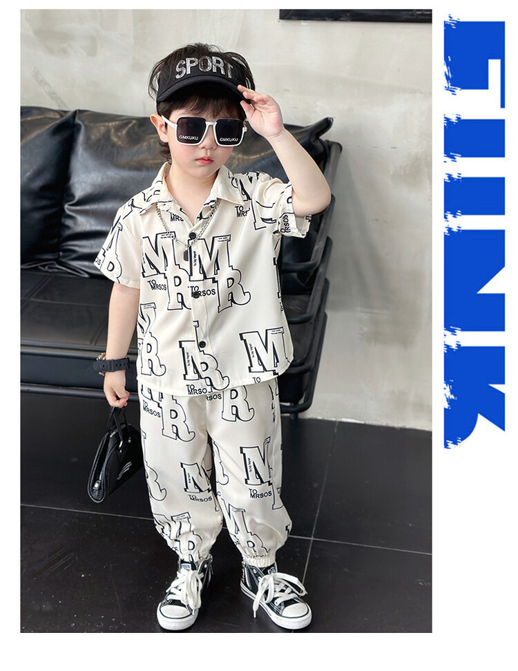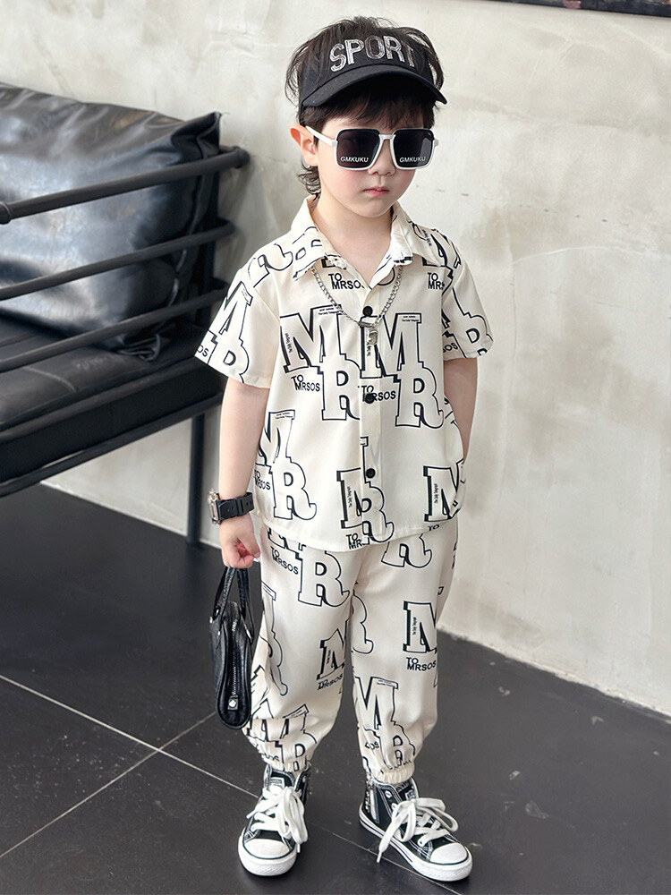 소년의 모기 방지 바지 세트 2024 여름 새 어린이 반팔 셔츠 투피스 세트 중형 및 대형 아동복 도매스토어 가기