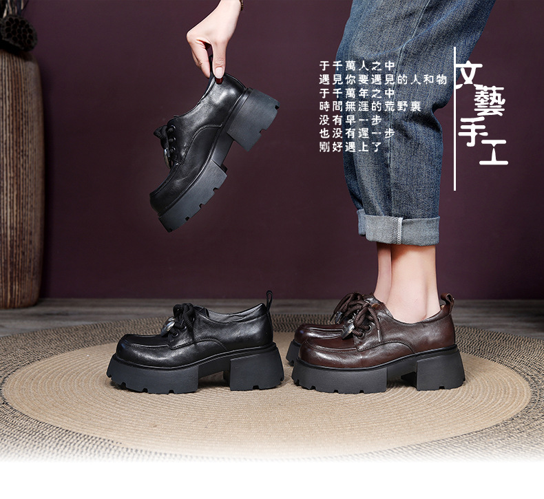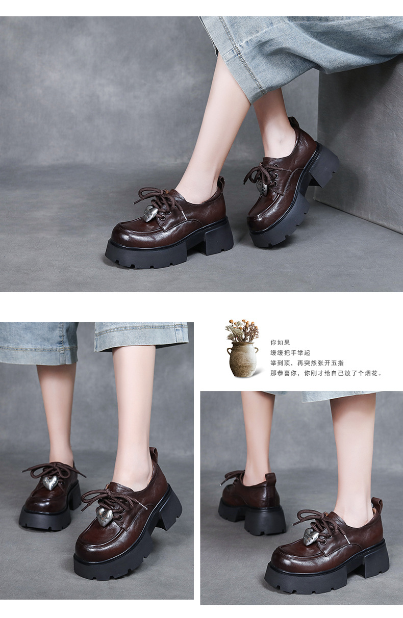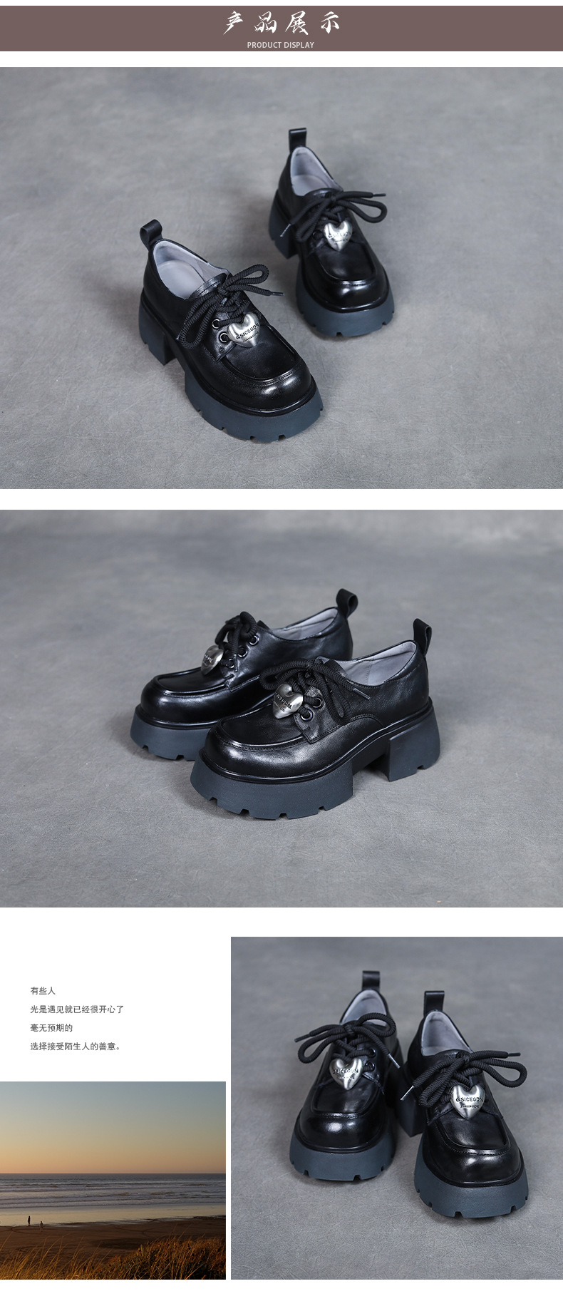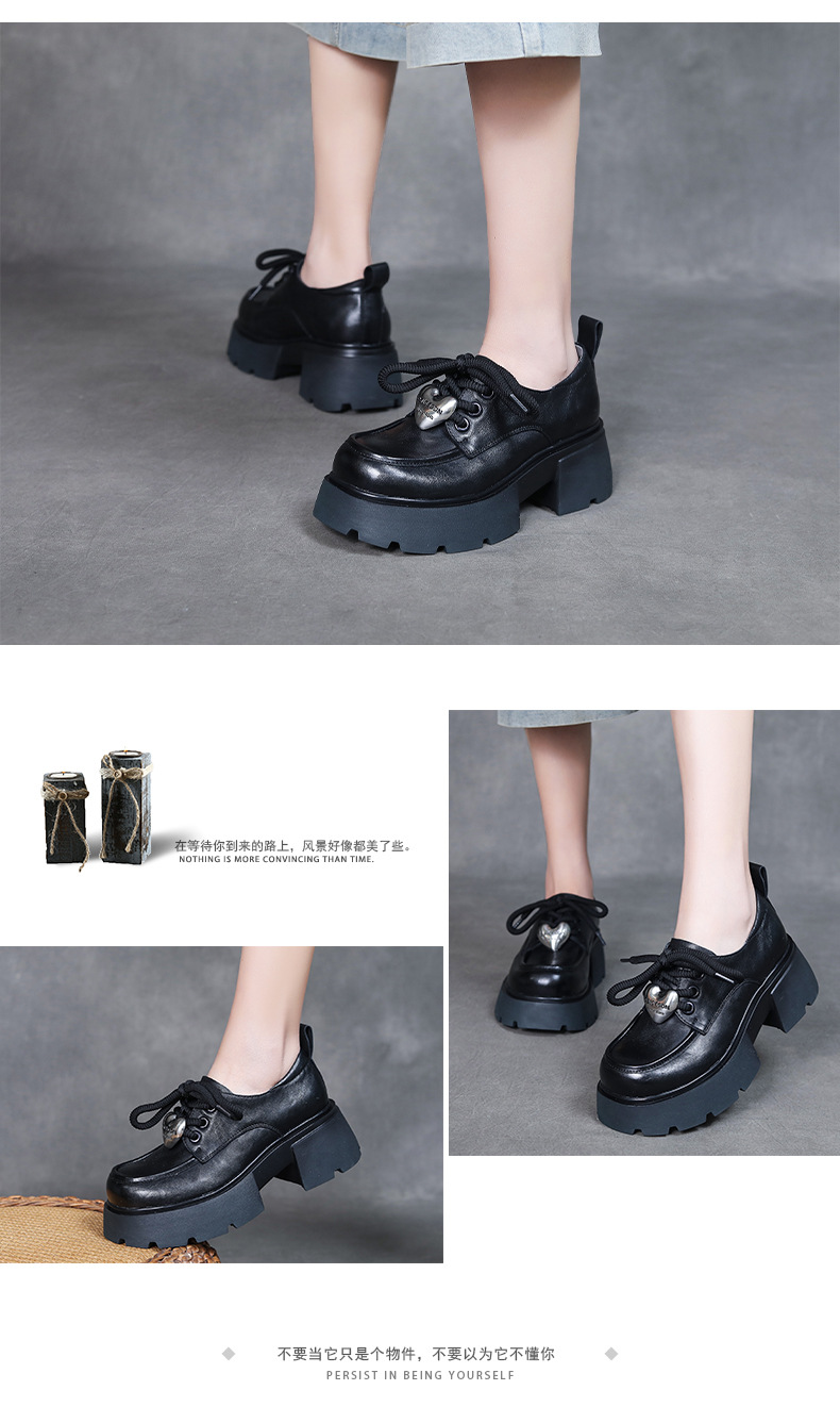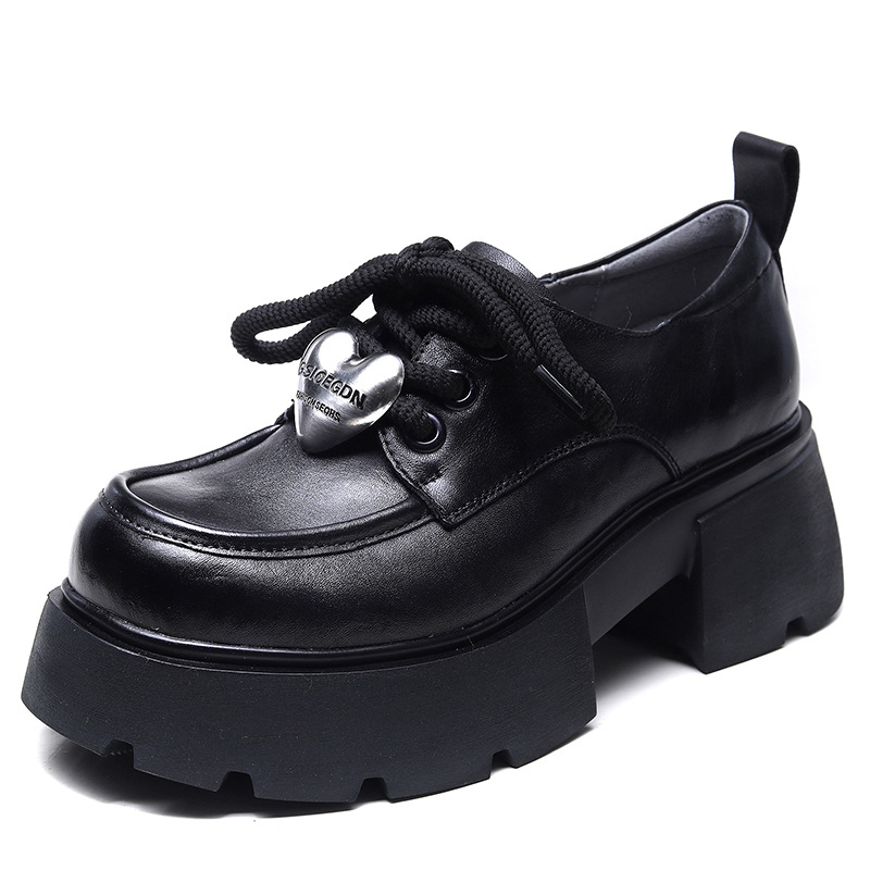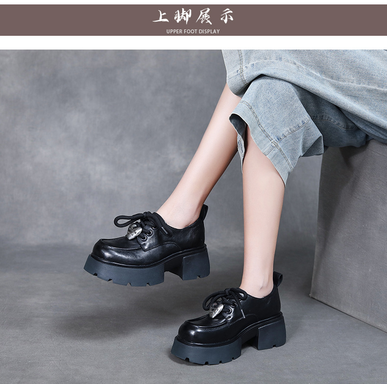 여성의 두꺼운 밑창 로퍼 2024 여름 새로운 사랑 금속 버클 가죽 신발 프레피 스타일 하이힐 신발스토어 가기