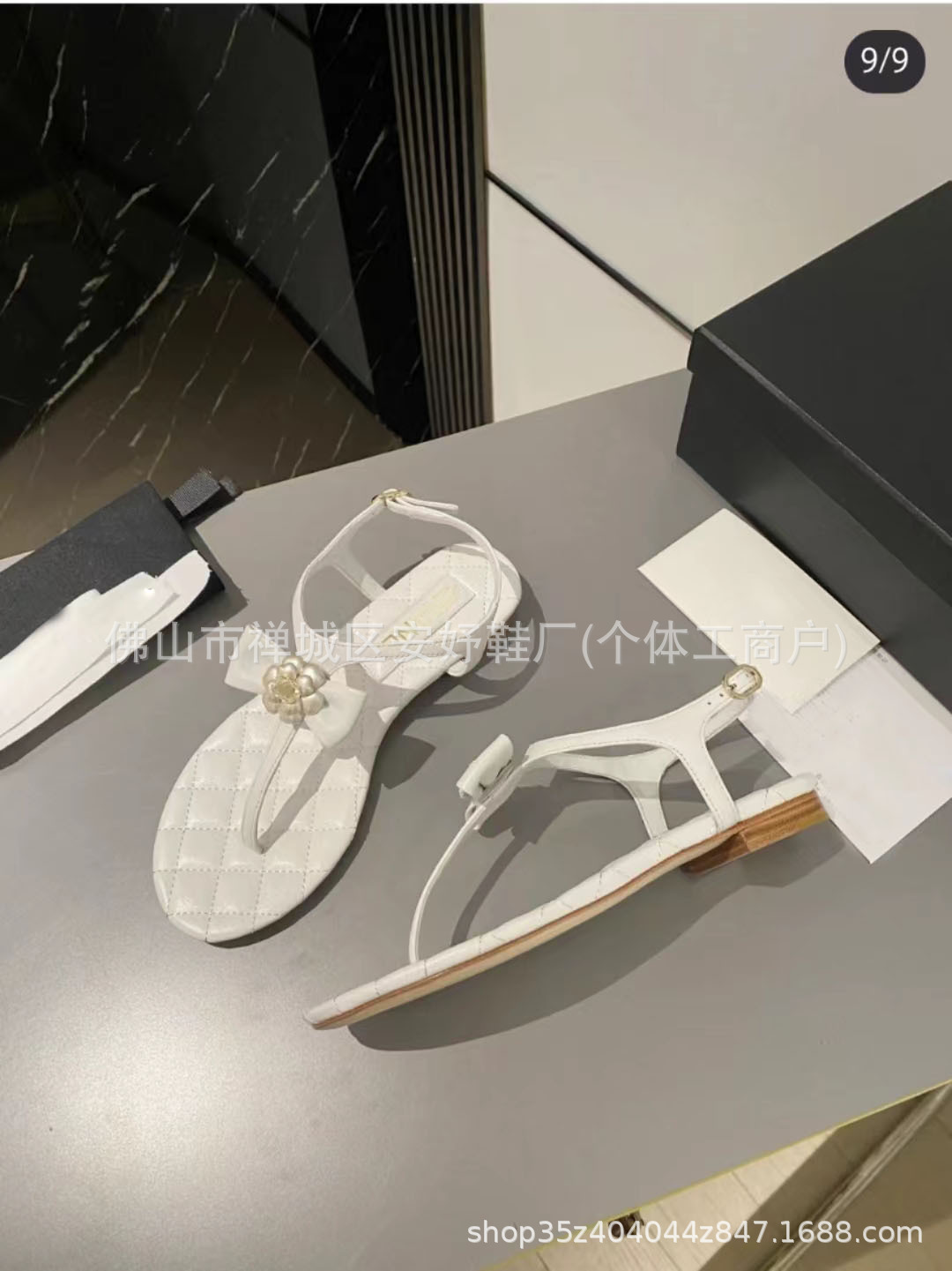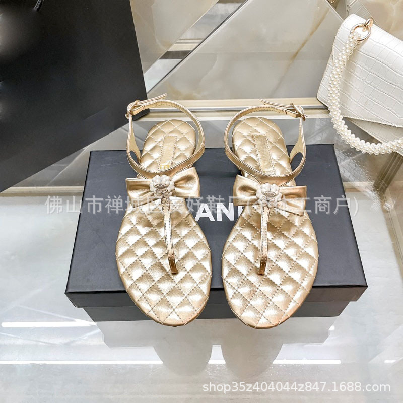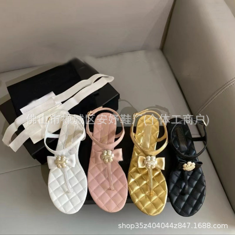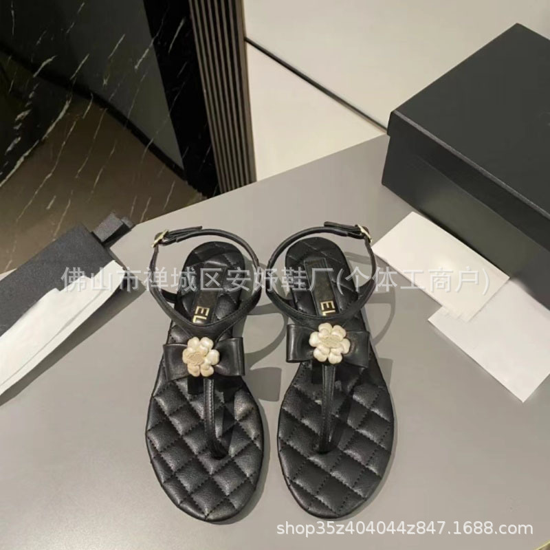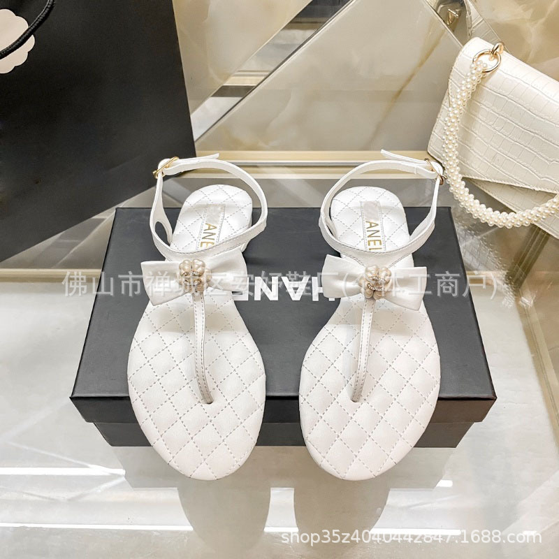 2024 조커 샌들 봄과 여름 새로운 꽃 다이아몬드 버클 활 클립 발가락 플랫 샌들 여성을위한 한 단어
