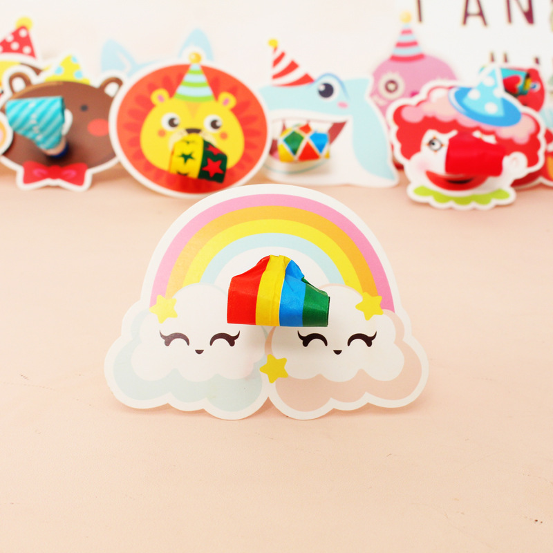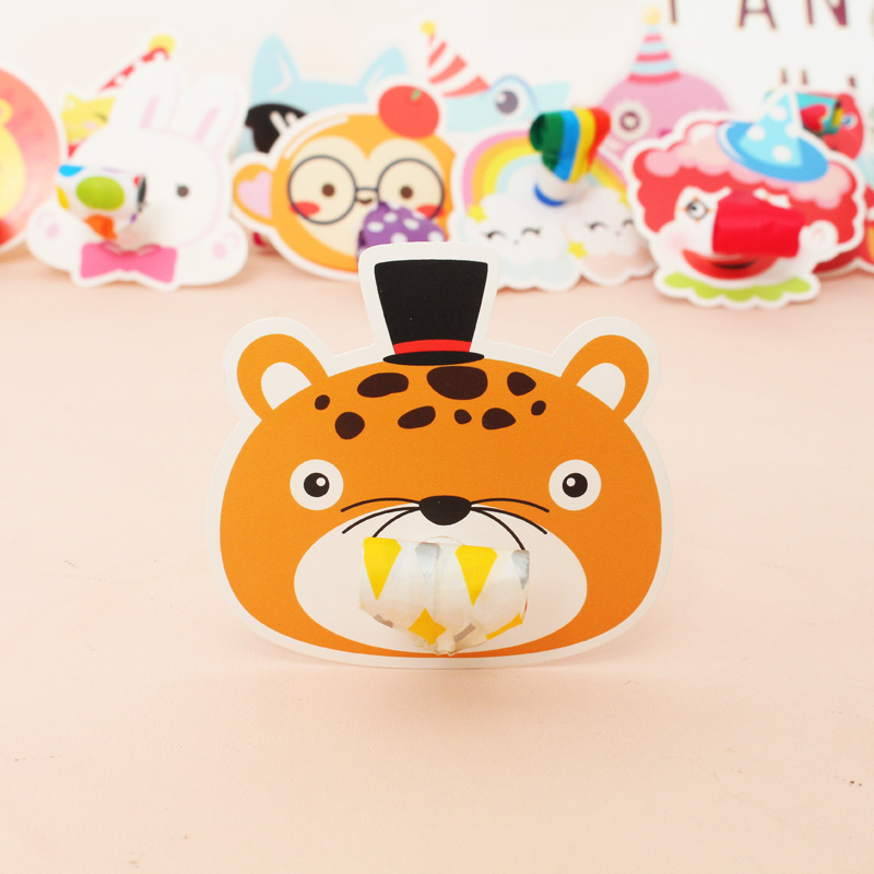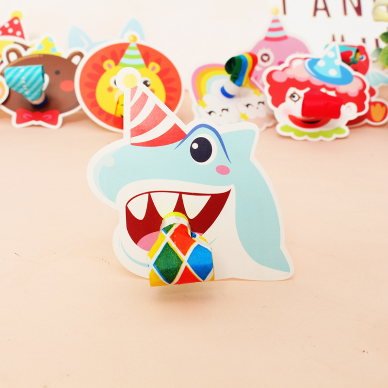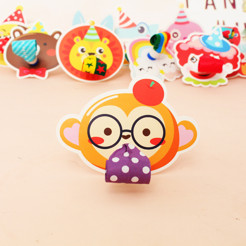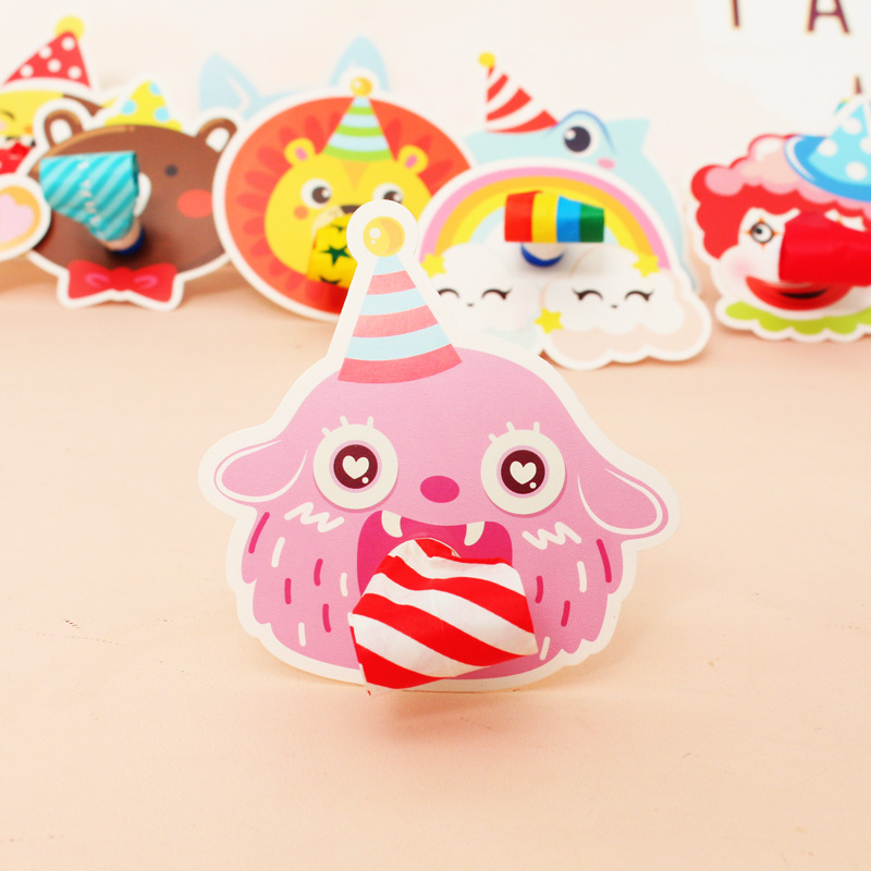 교육 장난감 새로운 이국적인 카드 새로운 생일 파티 파티 작은 휘파람 장난감 플라스틱 튜브 종이 카드 부는 용