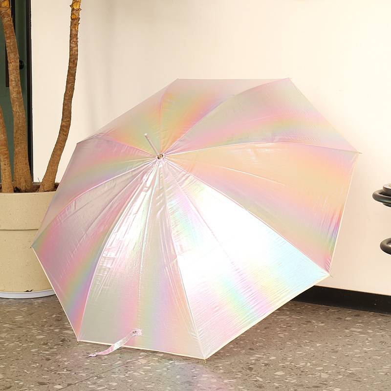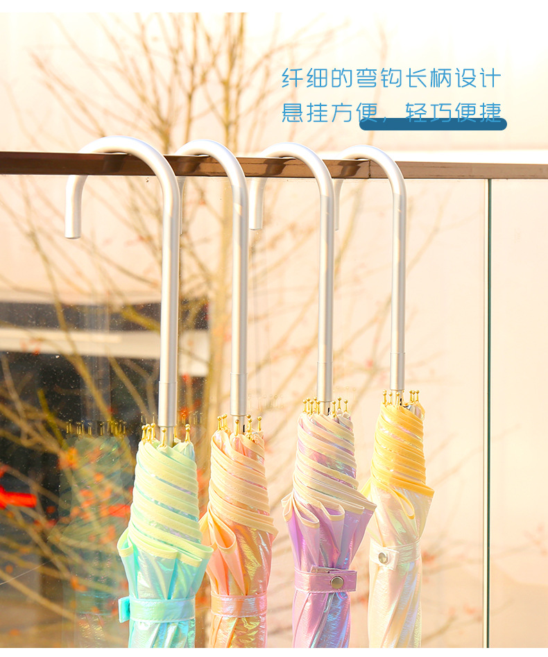 새로운 긴 손잡이 우산 여성 이중 사용 8 본 매뉴얼에 높은 모양의 오로라 매직 컬러 스트레이트 로드 단색 태양 우산
