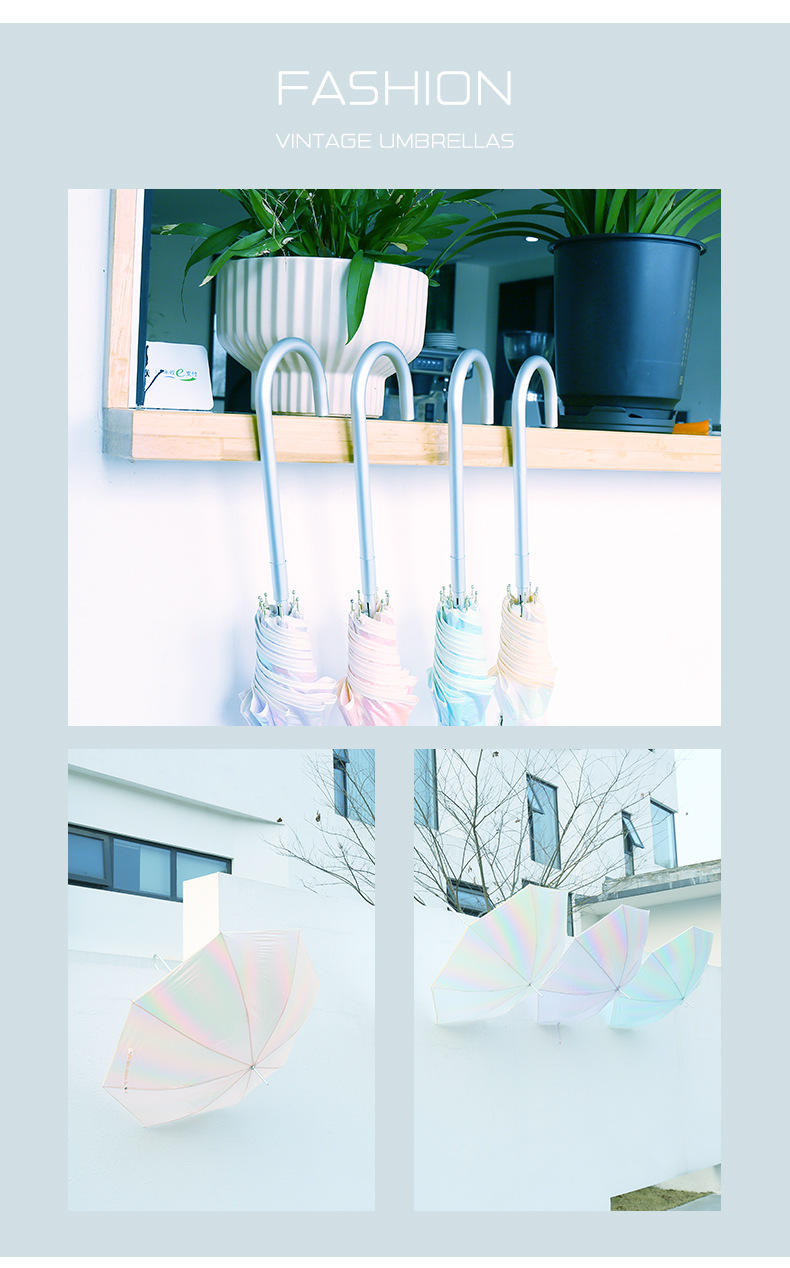 새로운 긴 손잡이 우산 여성 이중 사용 8 본 매뉴얼에 높은 모양의 오로라 매직 컬러 스트레이트 로드 단색 태양 우산스토어 가기