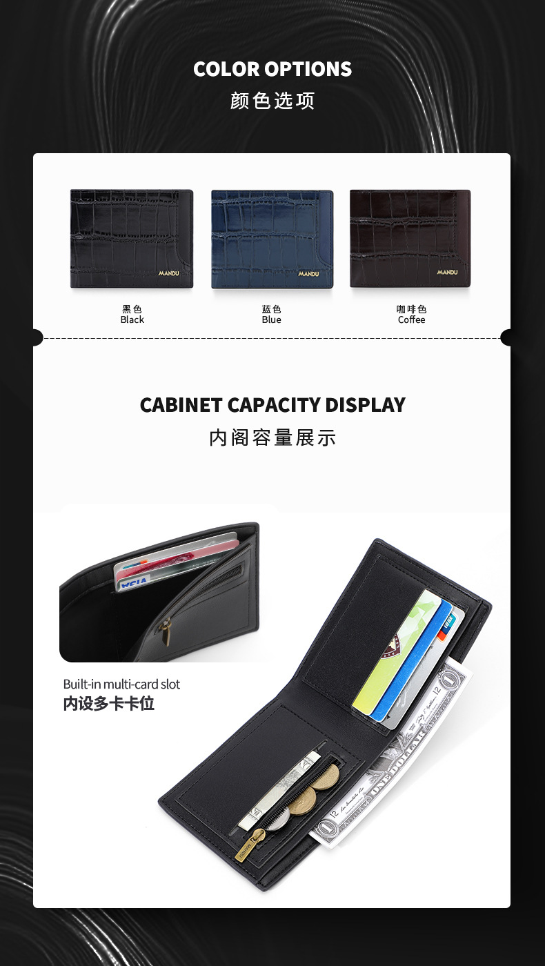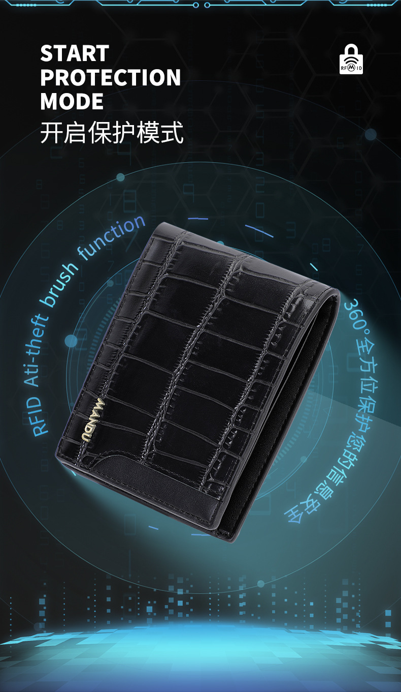 초경량 크로스보더 신용카드 지갑 남성용 고급 패션 RFID 스톤 패턴 짧은 디자인 동전 대용량 카드 지갑스토어 가기