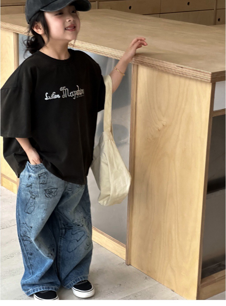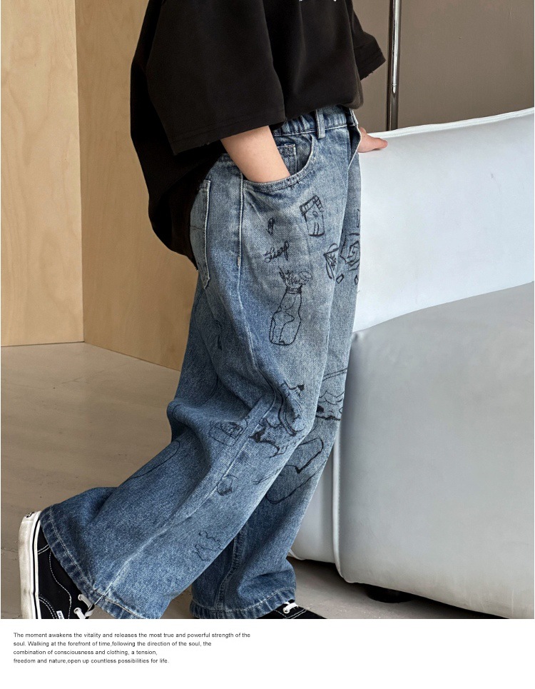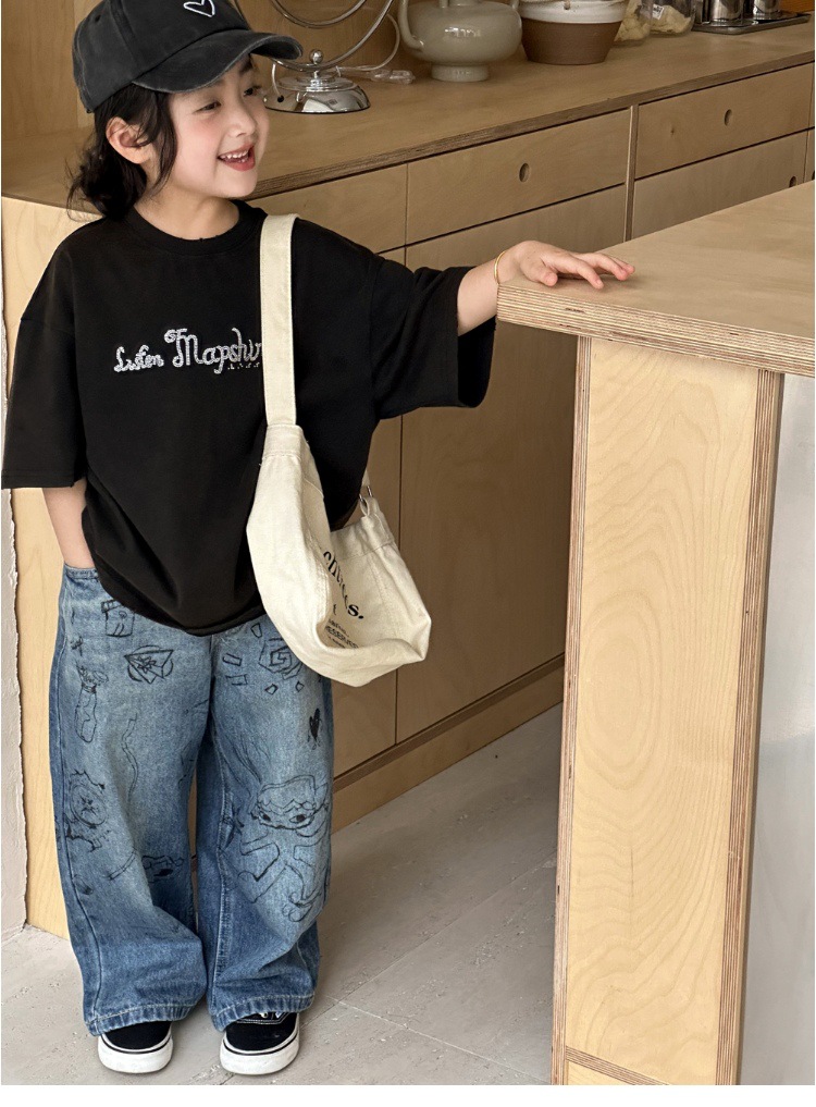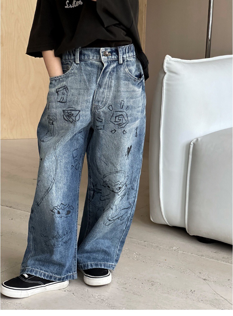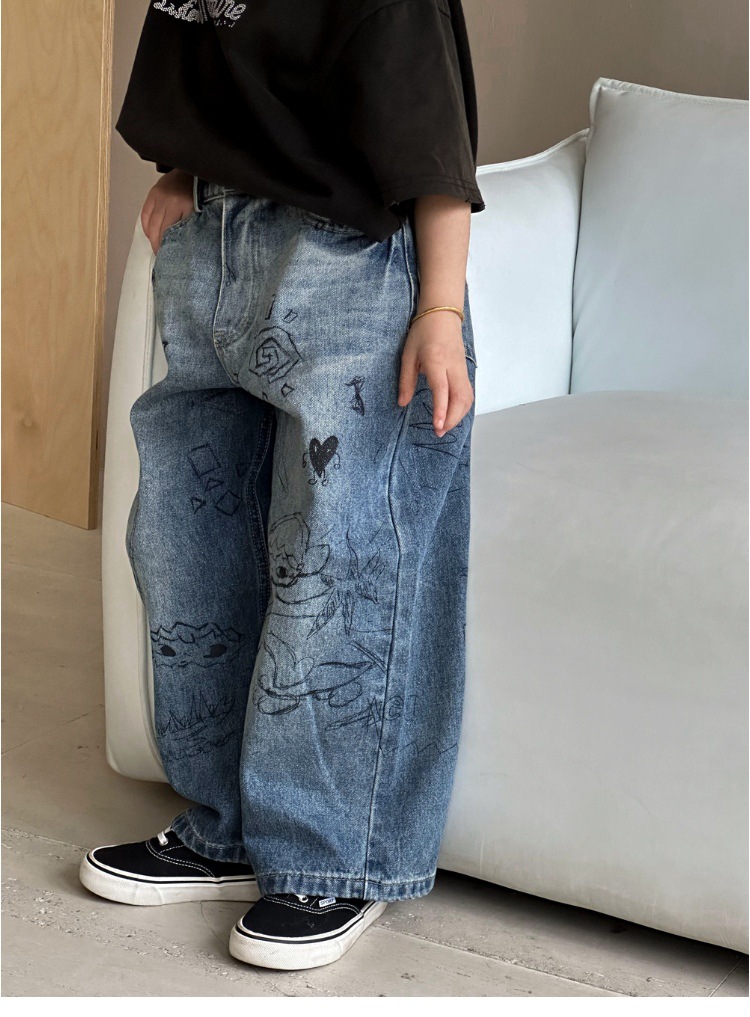 여아 바지 2025 가을 새로운 스타일 다용도 중대형 아동 바지 루즈 캐주얼 그래피티 아동 스트레이트 청바지