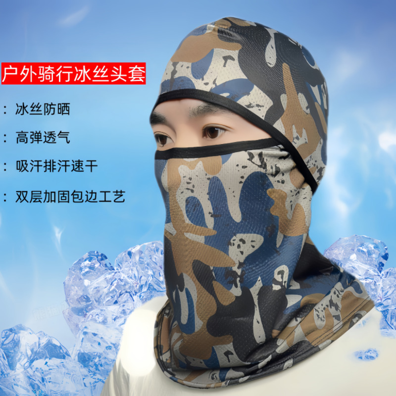 아이스 실크 태양 보호 헤드 기어 전체 얼굴 여름 얼굴 커버 남자와 여자의 얼굴 지니 야외 승마 헤드 기어 턱받이 헤드 기어스토어 가기
