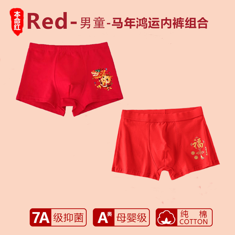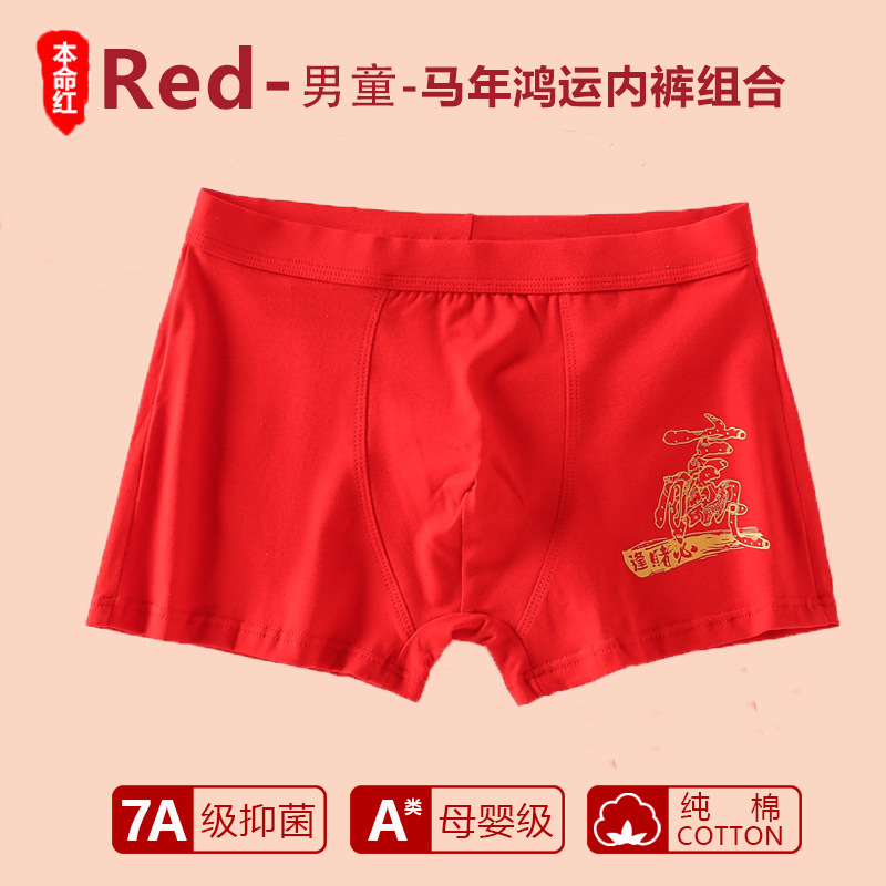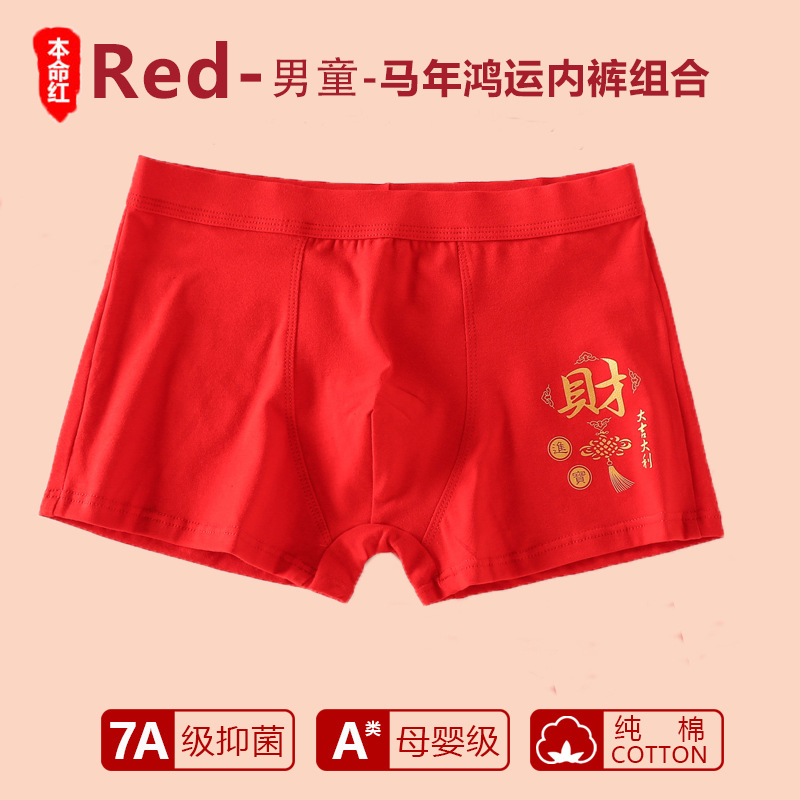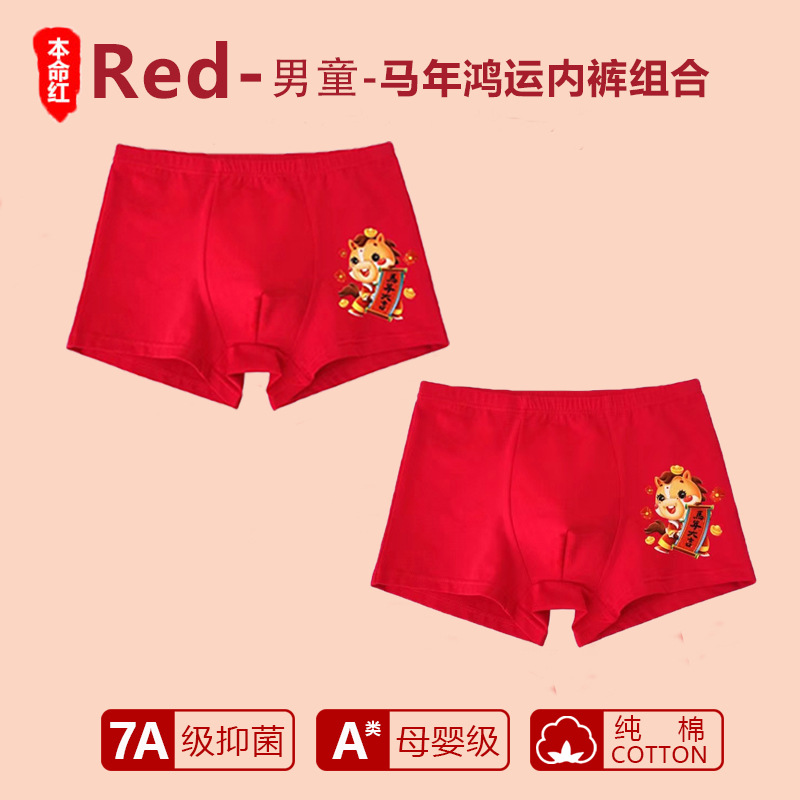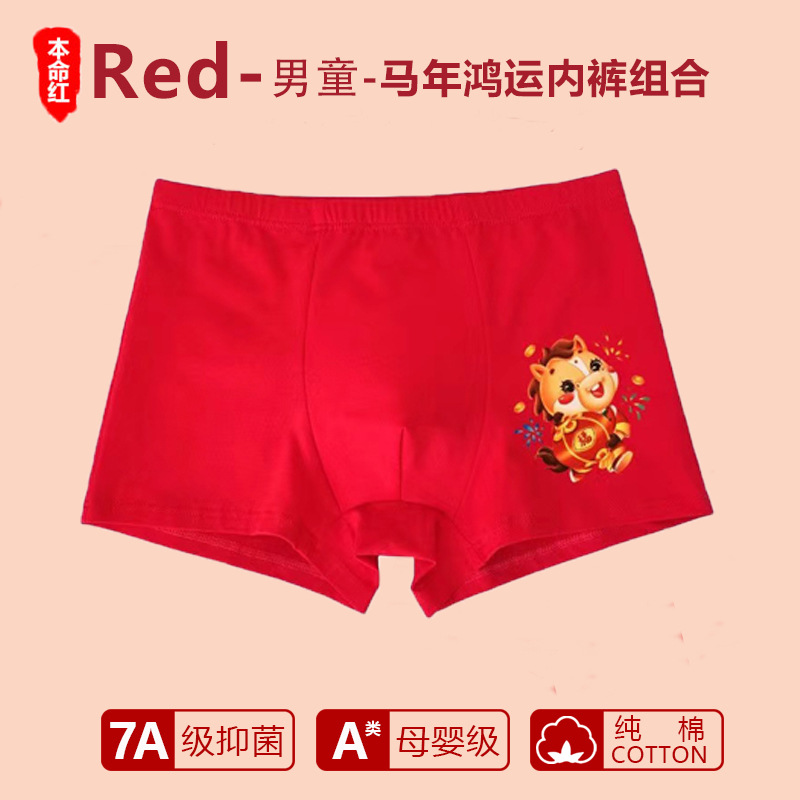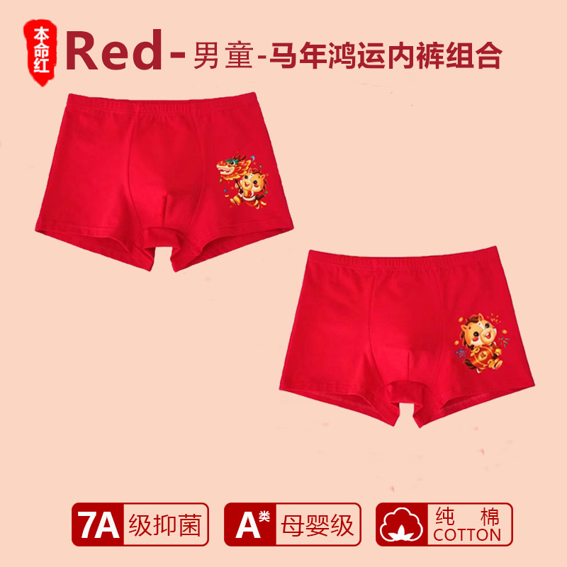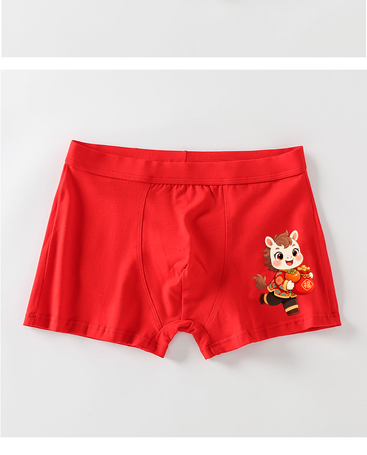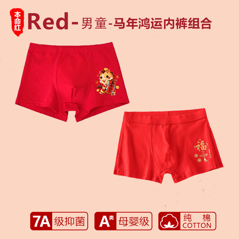 남아 사각팬티, 말의 해(干支)를 맞는 어린이, 13세 청소년 남아용, 빨간색 순면 아동용 사각팬티, 12세
