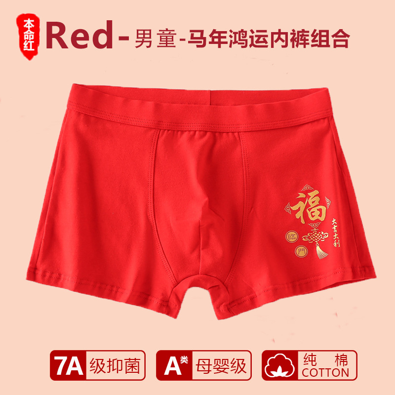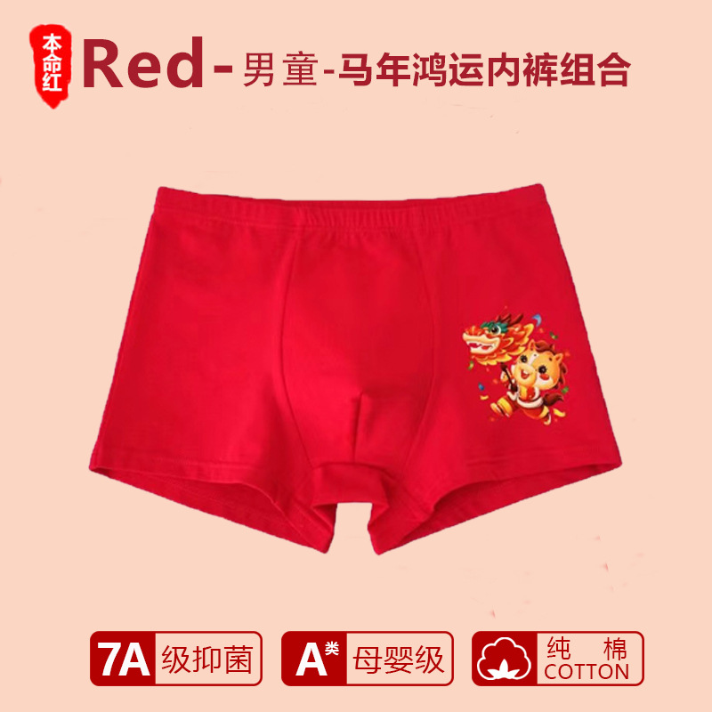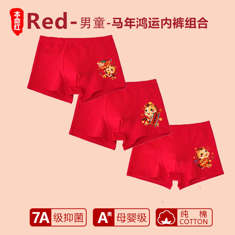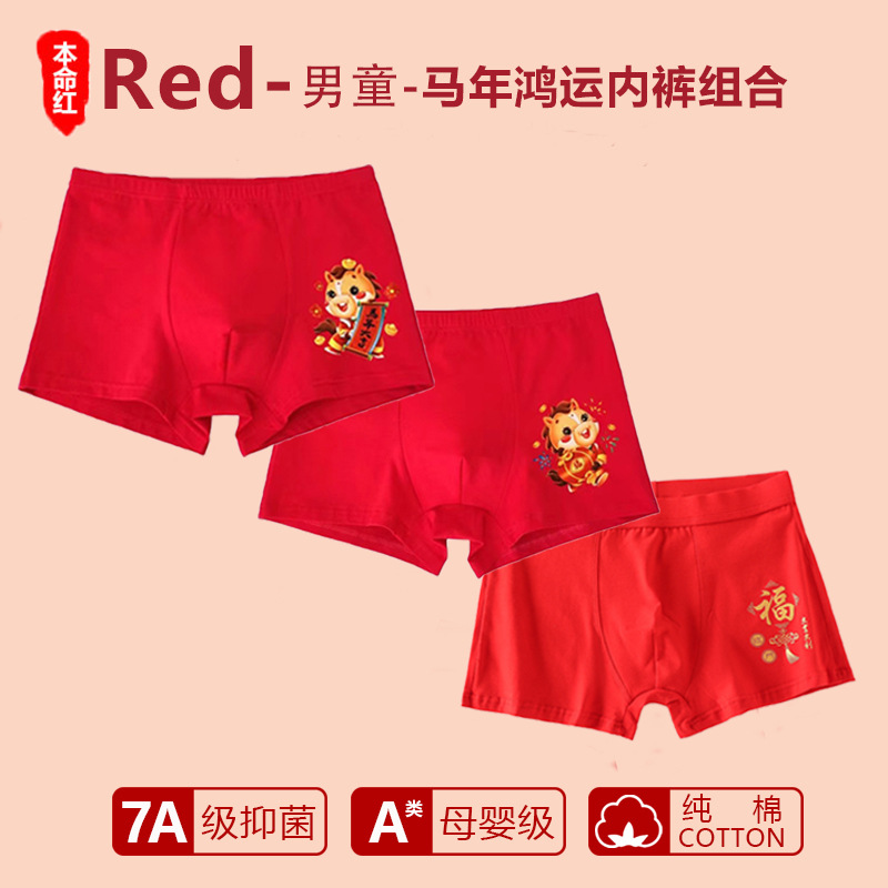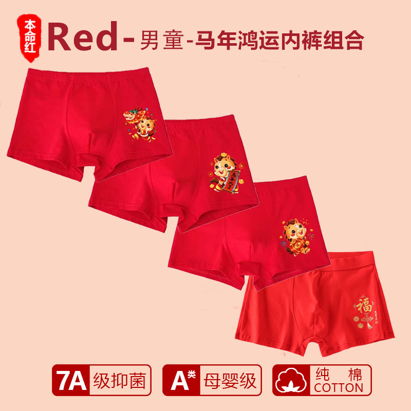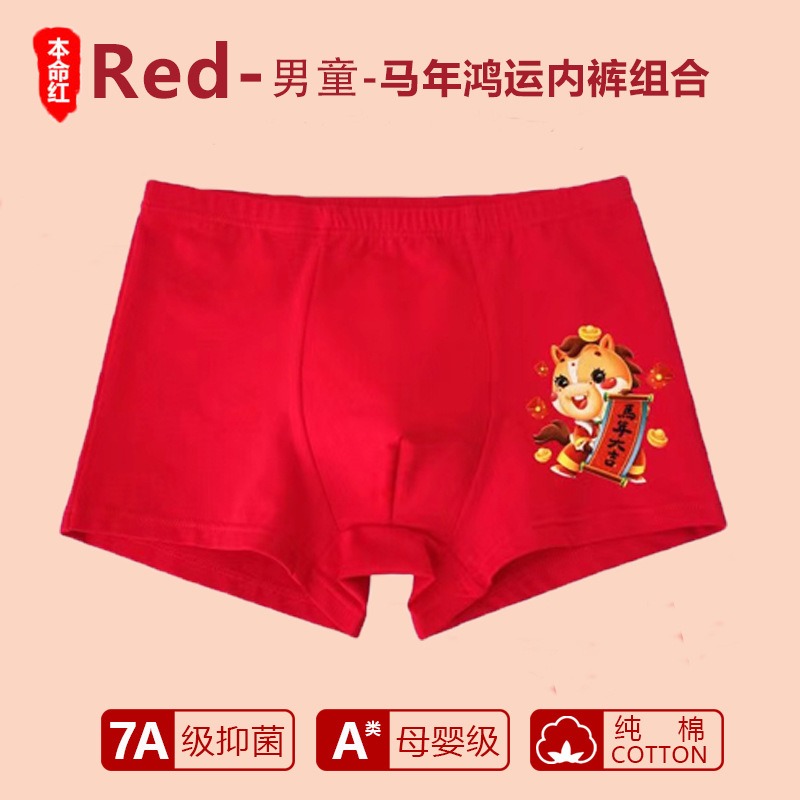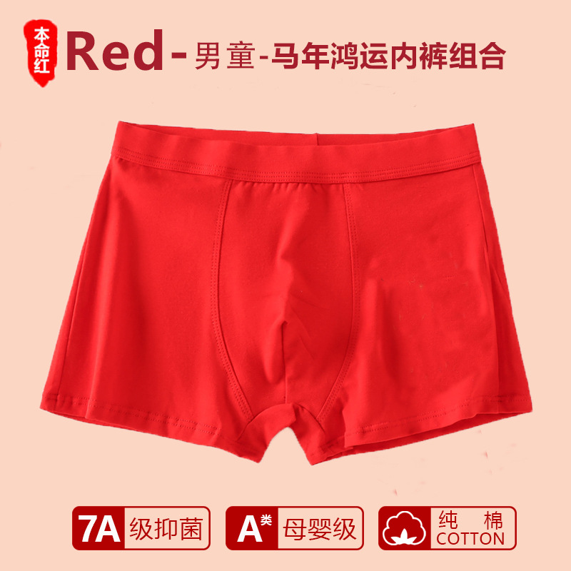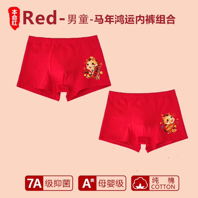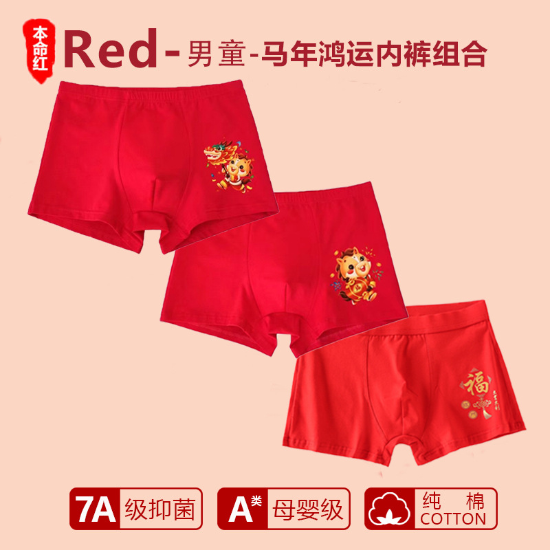 남아 사각팬티, 말의 해(干支)를 맞는 어린이, 13세 청소년 남아용, 빨간색 순면 아동용 사각팬티, 12세