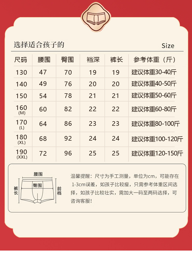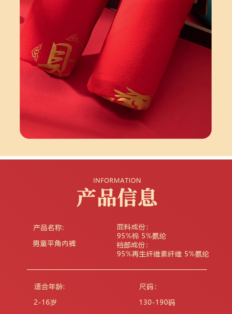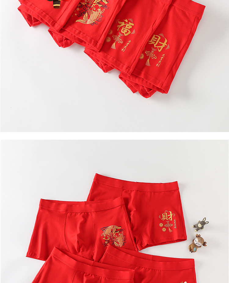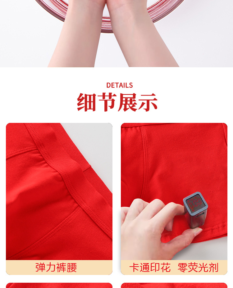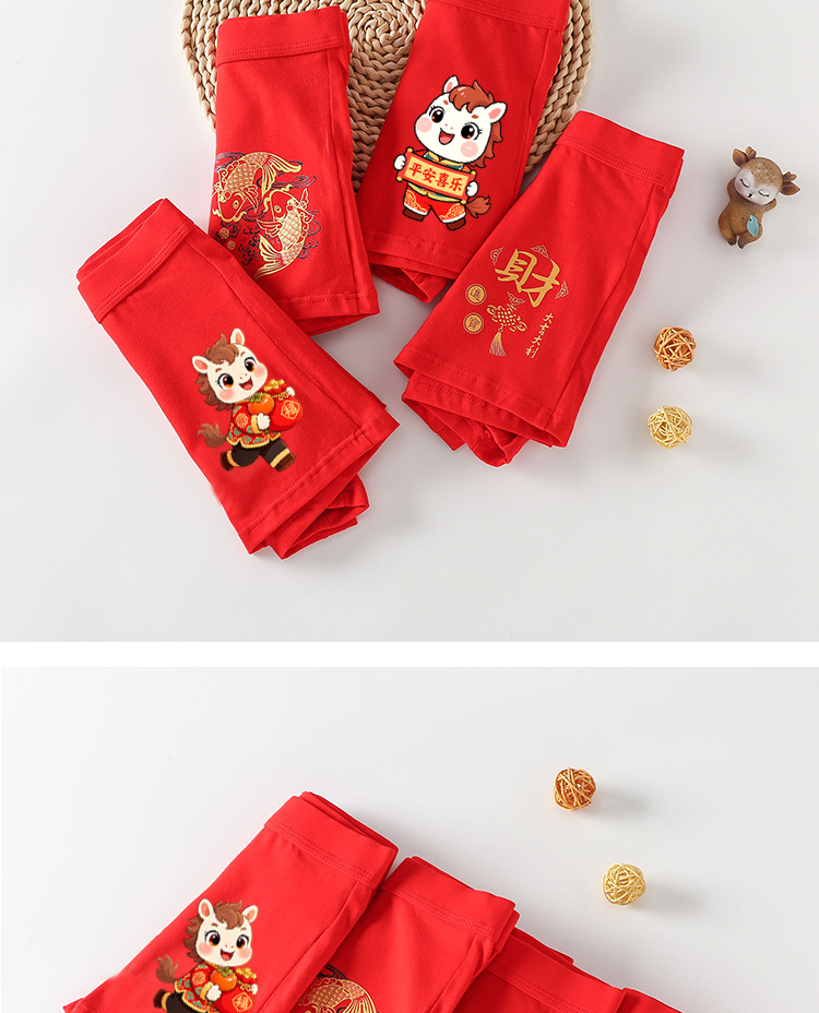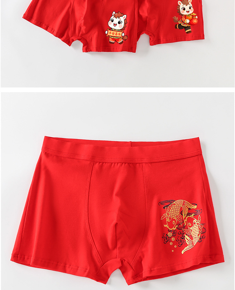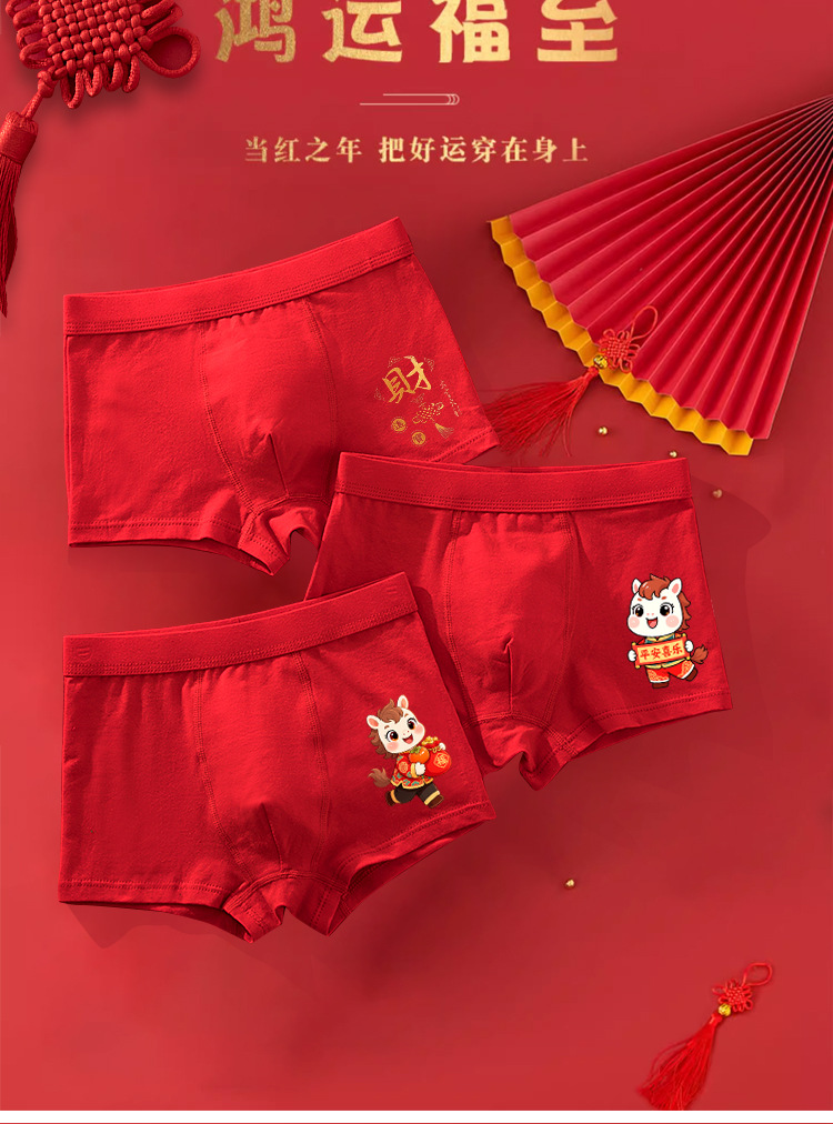 남아 사각팬티, 말의 해(干支)를 맞는 어린이, 13세 청소년 남아용, 빨간색 순면 아동용 사각팬티, 12세