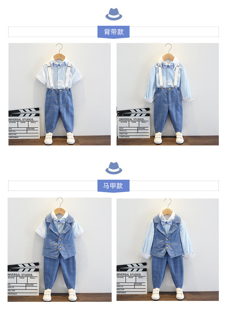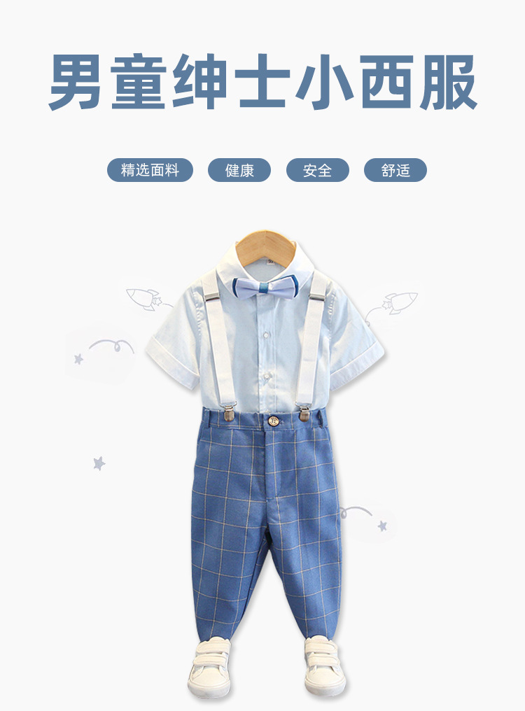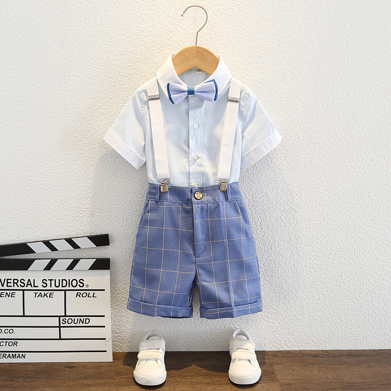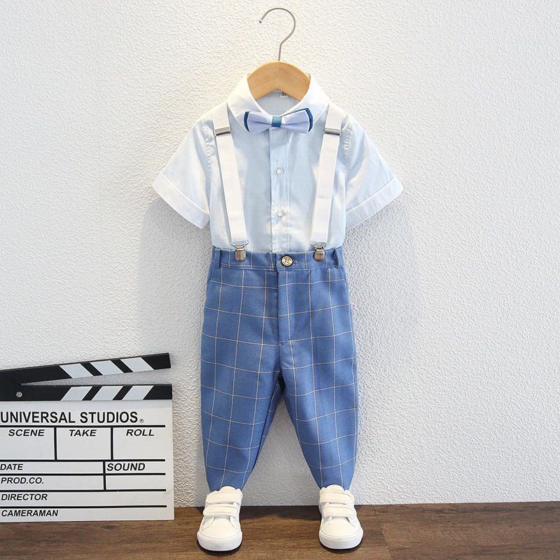 플라워 보이의 원피스 세트 여름 서스펜더 바지 어린이 잘 생긴 작은 세트 소년의 짧은 소매 영국 작은 원피스스토어 가기