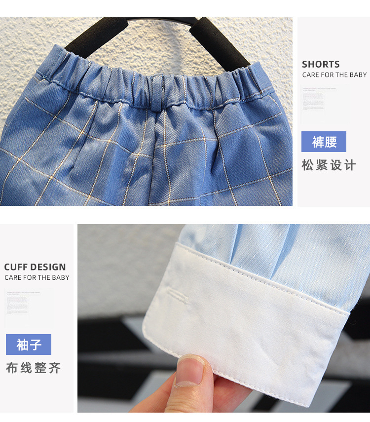 • 블루 체크 무늬 조끼 + 블루 체크 무늬 반바지 + 블루 스타 도트 짧은 소매 나비 넥타이