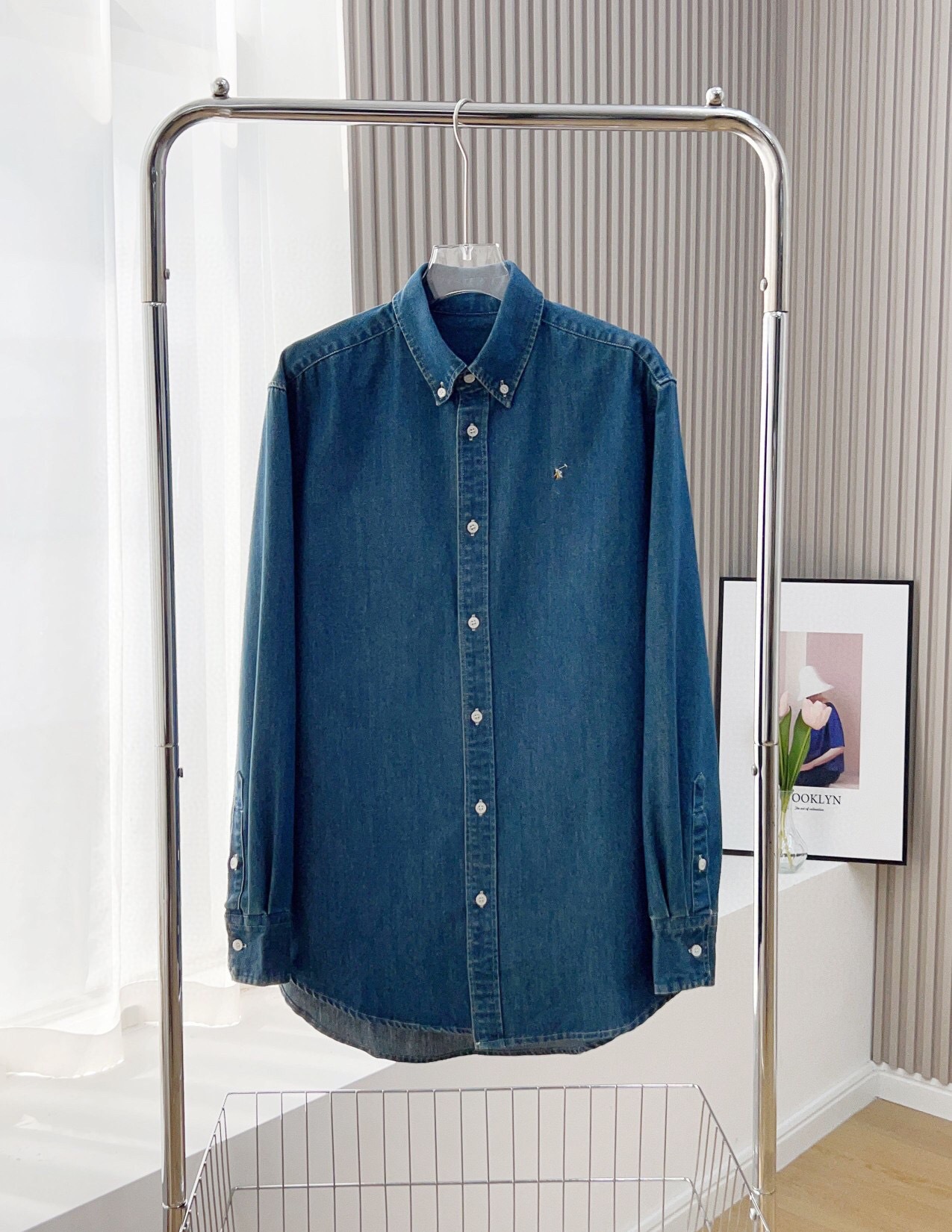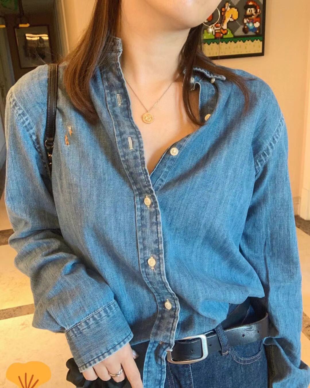 RL 재고 스윕 사이즈 랄프 데님 셔츠 유니섹스 유행 올매치 자수 포니 폴로 칼라 셔츠스토어 가기
