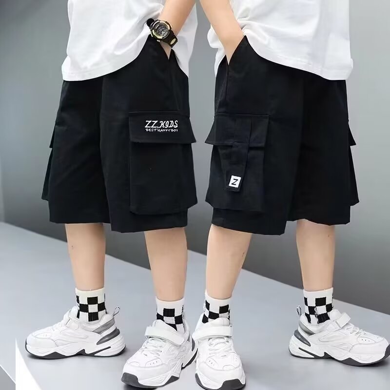 소년 작업복 반바지 여름 2024 새로운 한국식 캐주얼 바지 어린이 5 점 바지 중형 및 대형 어린이 바지 패션