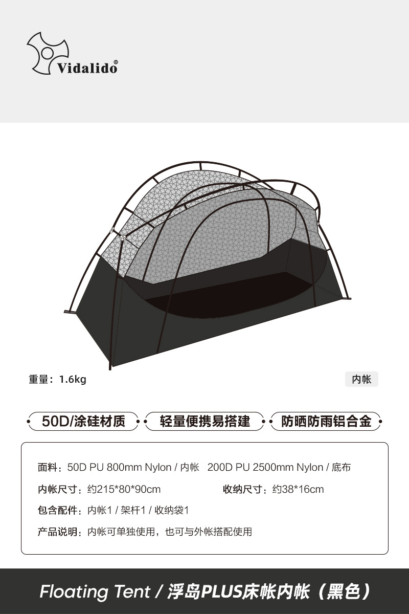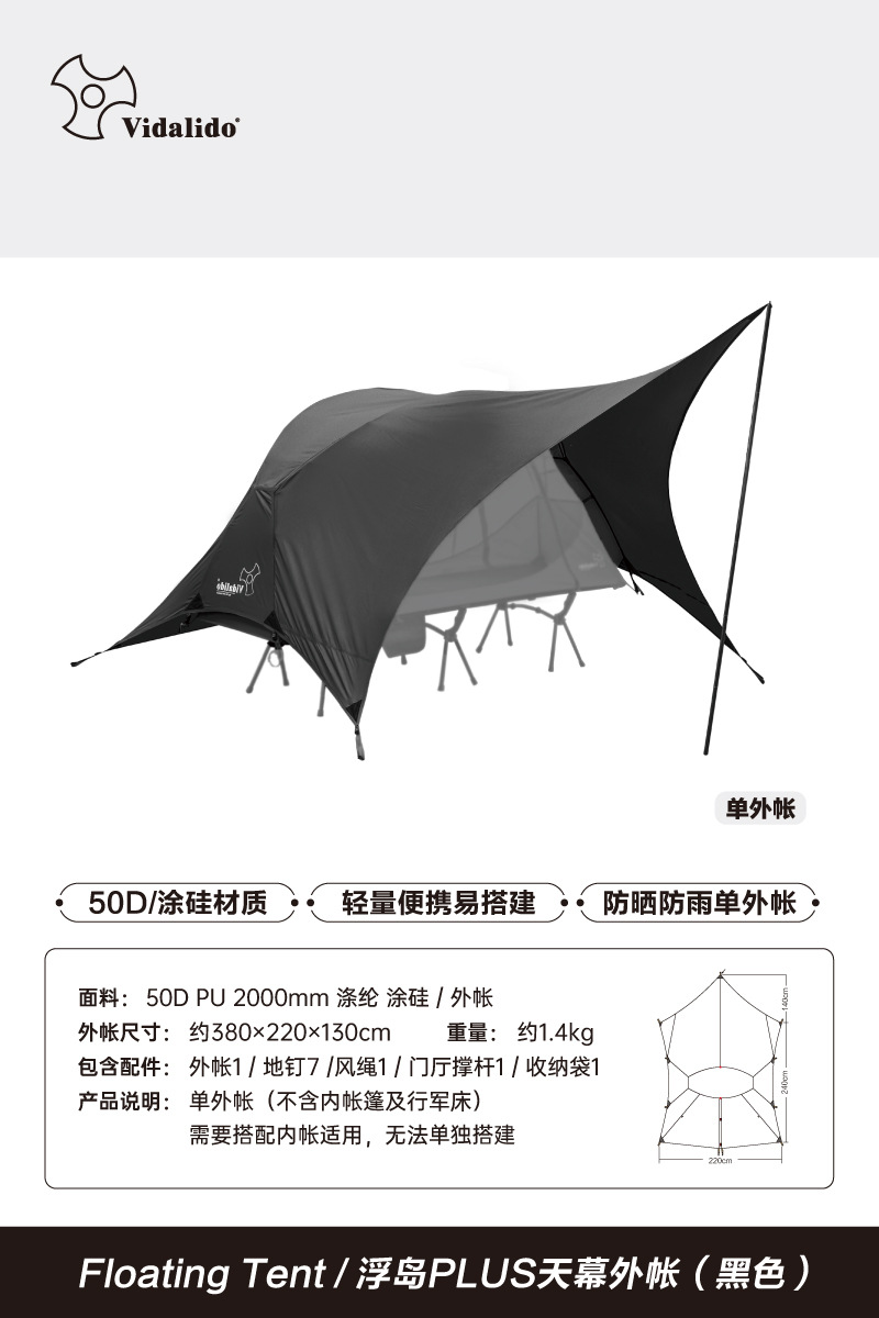 • 떠 다니는 섬 플러스 내부 텐트 블랙