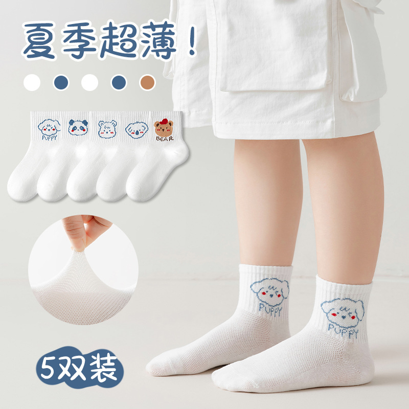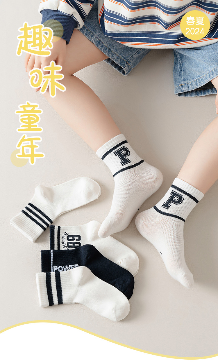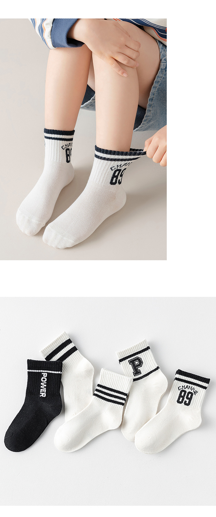새로운 봄과 여름 소년 양말 얇은 스포츠면 양말 메쉬 통기성 어린이 양말 중반 종아리 편지 패션 양말 도매