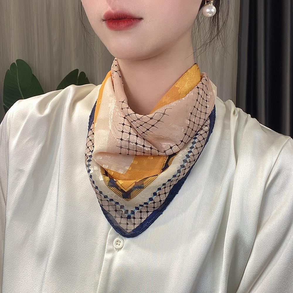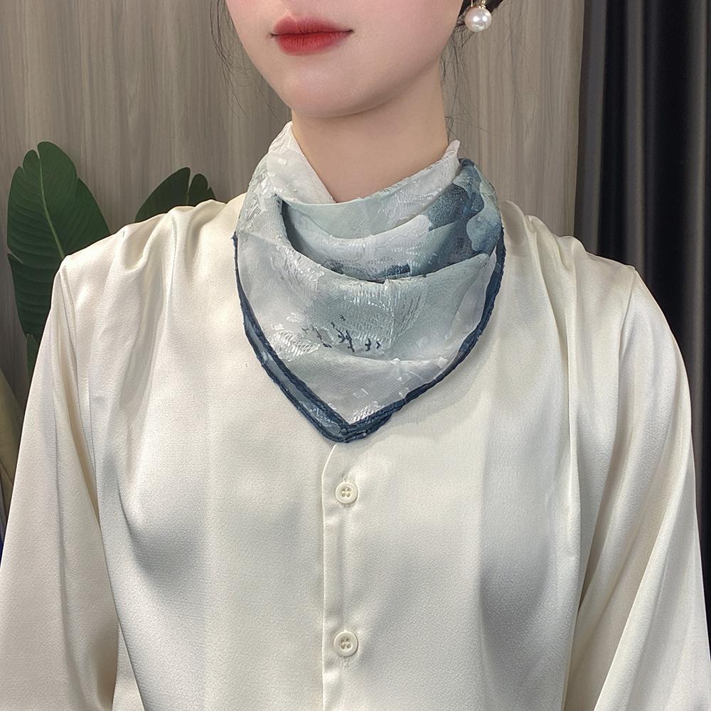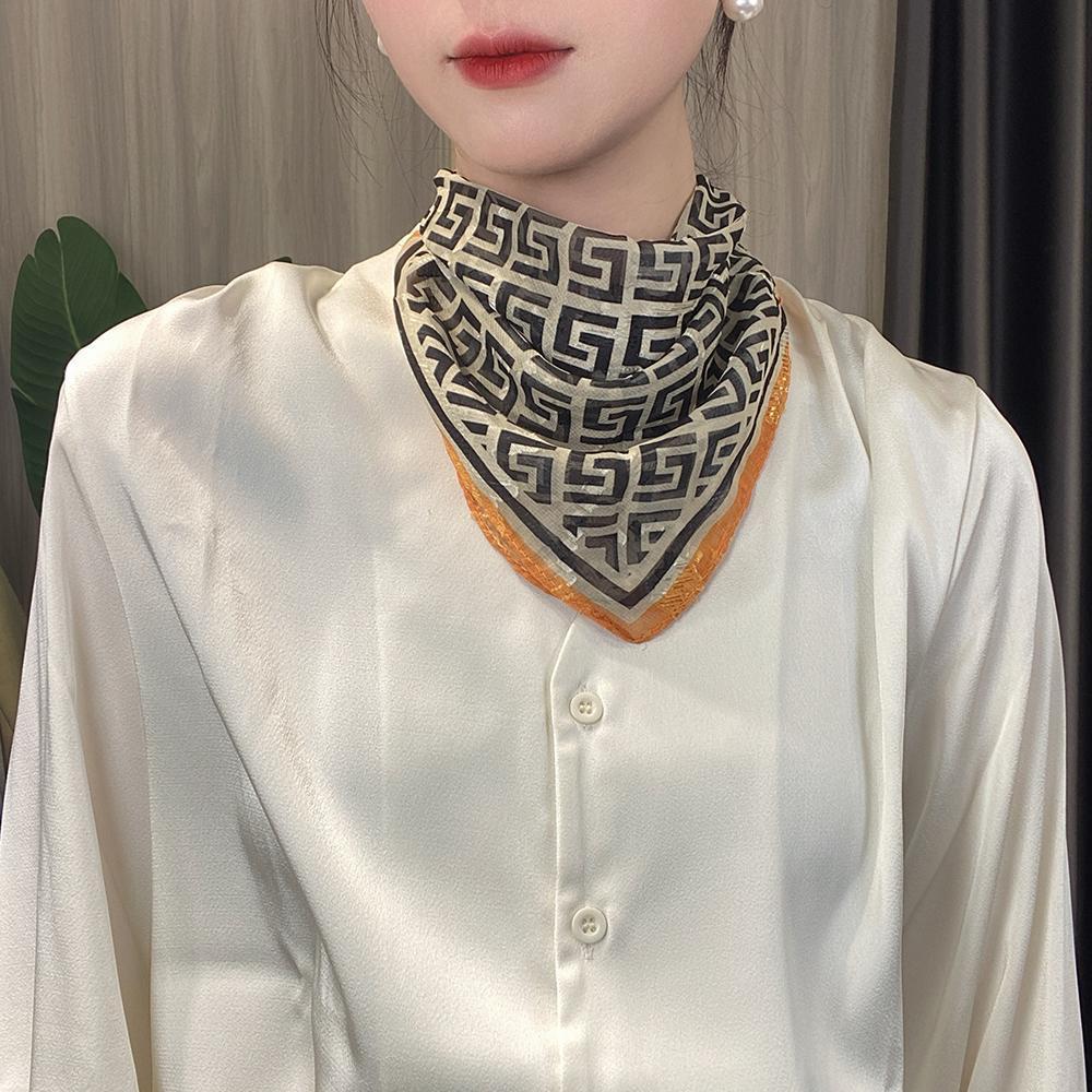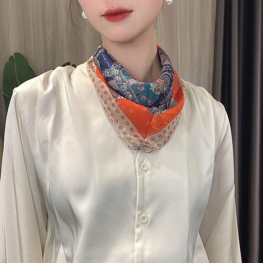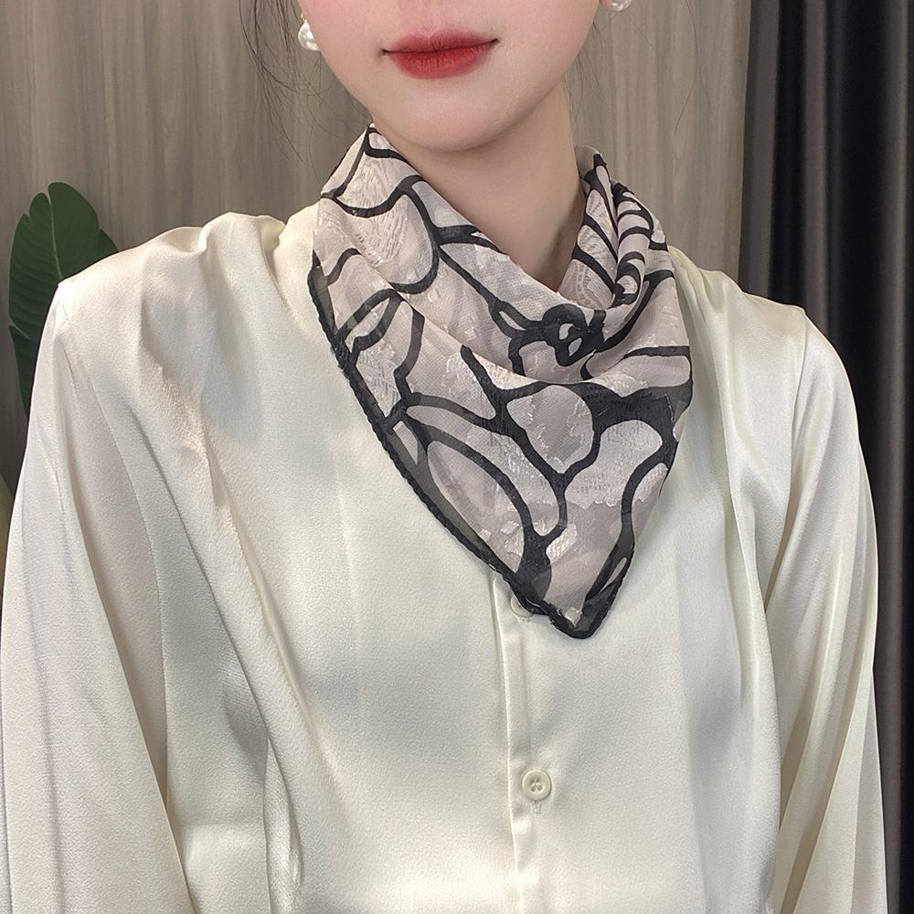 2024 봄과 여름 목 보호 목걸이 스카프 패션 작은 스카프 우아한 다용도 얇은 마그네틱 버클 여성용 진주 사각형 스카프
