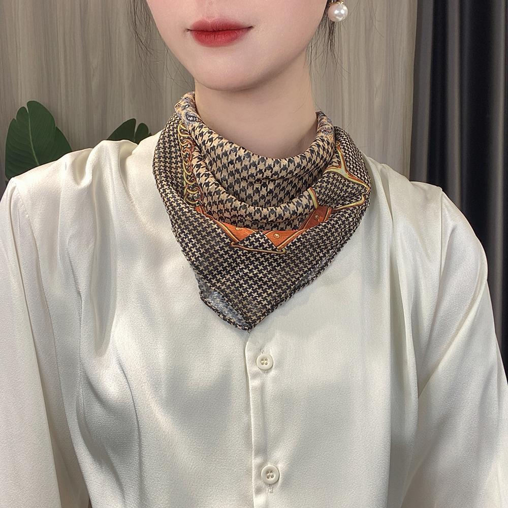 2024 봄과 여름 목 보호 목걸이 스카프 패션 작은 스카프 우아한 다용도 얇은 마그네틱 버클 여성용 진주 사각형 스카프스토어 가기