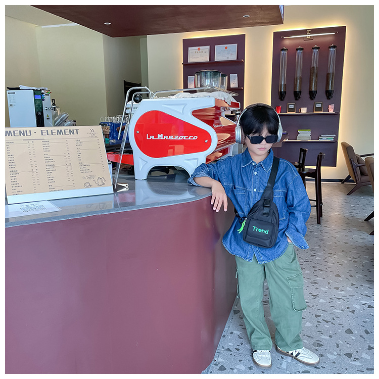 트렌디 한 멋진 캐주얼 어린이 가방 새로운 2024 한국 스타일 소년 메신저 가방 잘 생긴 허리 가방 트렌디 한 어린이 가슴 가방스토어 가기