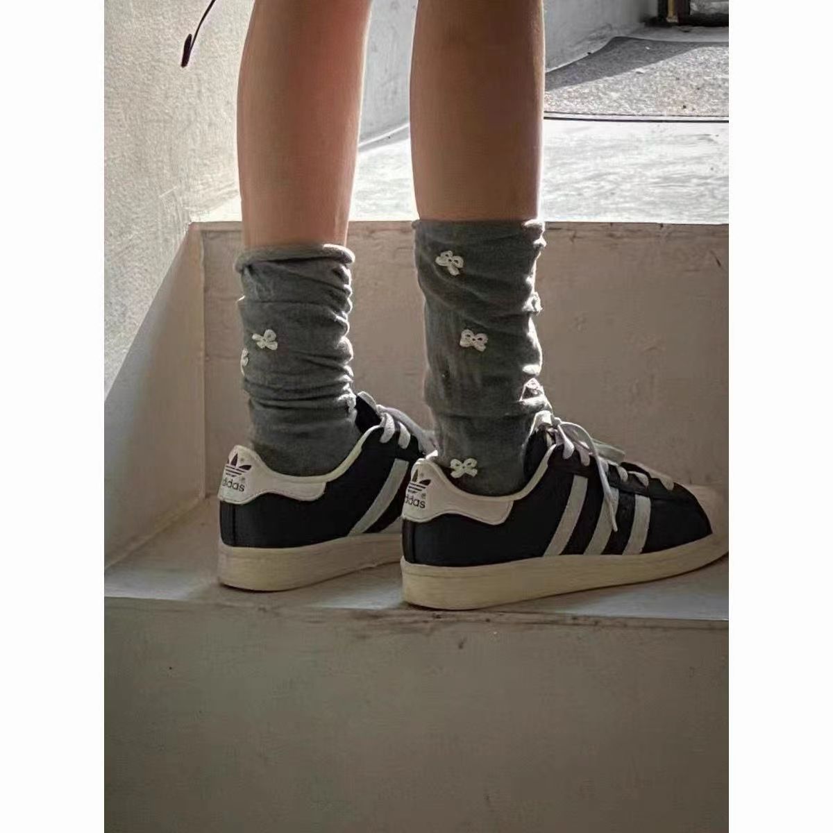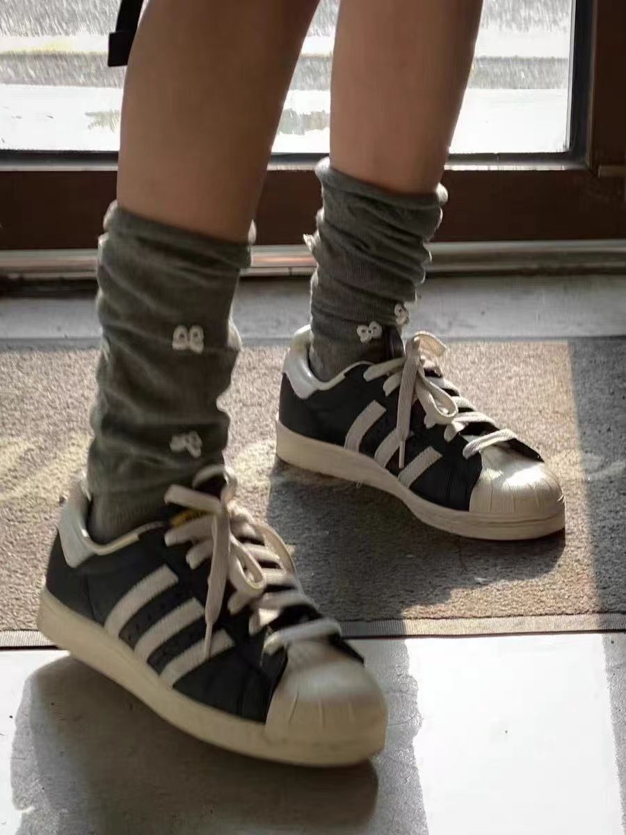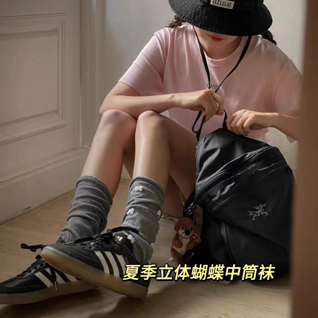 봄과 여름 한국 동대문 bowknot 양말 니트 발레 스타일 중반 송아지 통기성 양말 간단한 스타킹