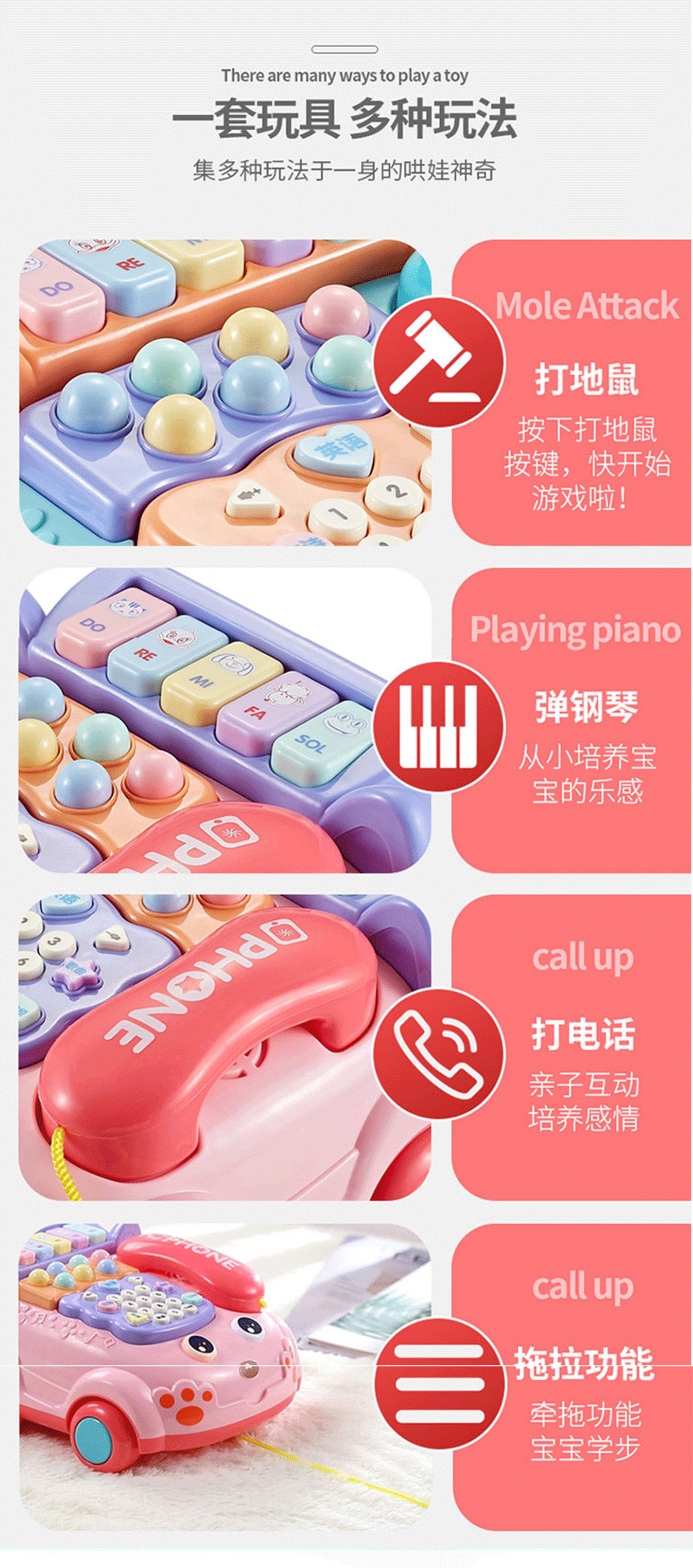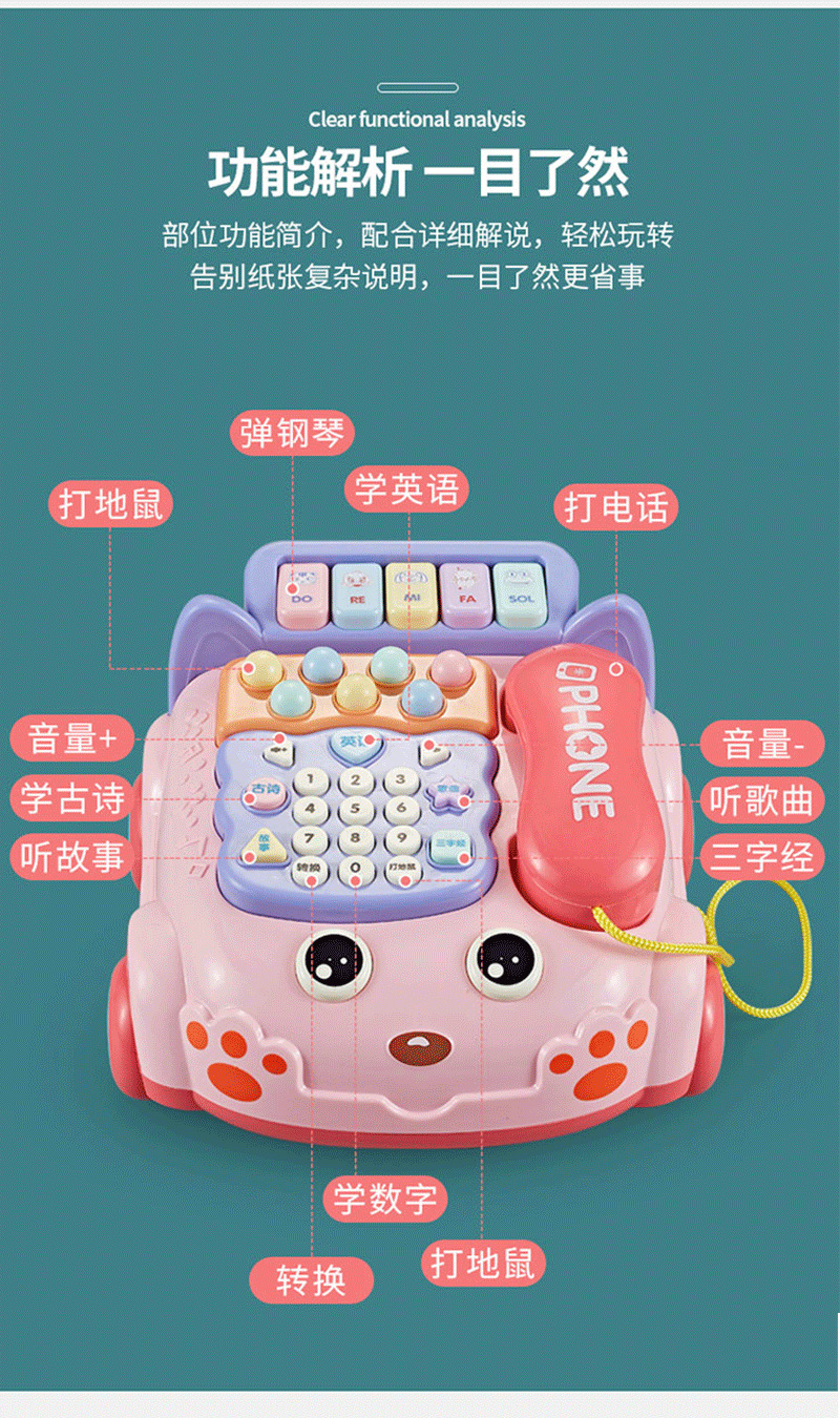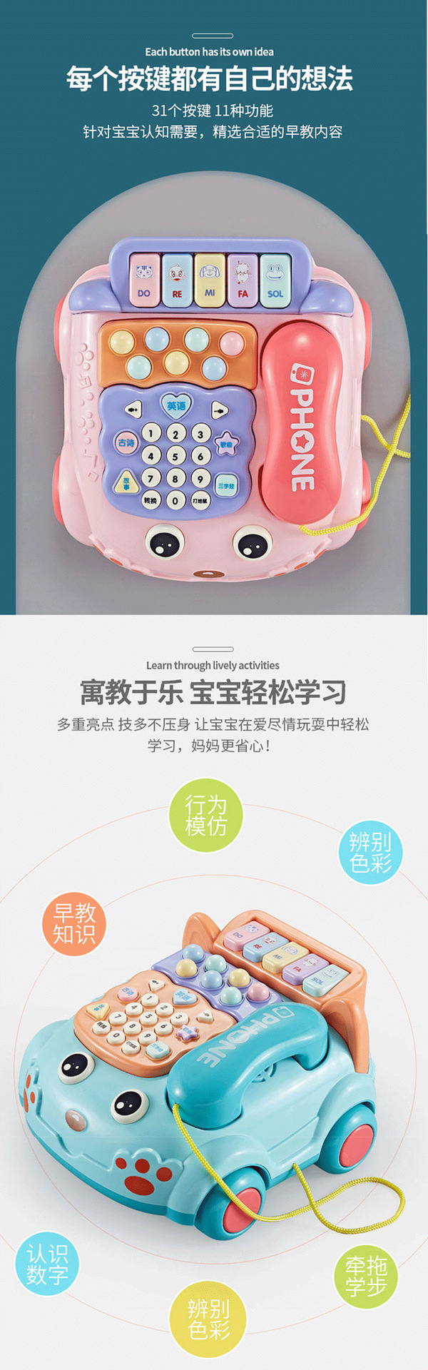 어린이 다기능 전화 시뮬레이션 유선 장난감 아기 음악 이야기 퍼즐 조기 교육 소녀 장난감 도매스토어 가기